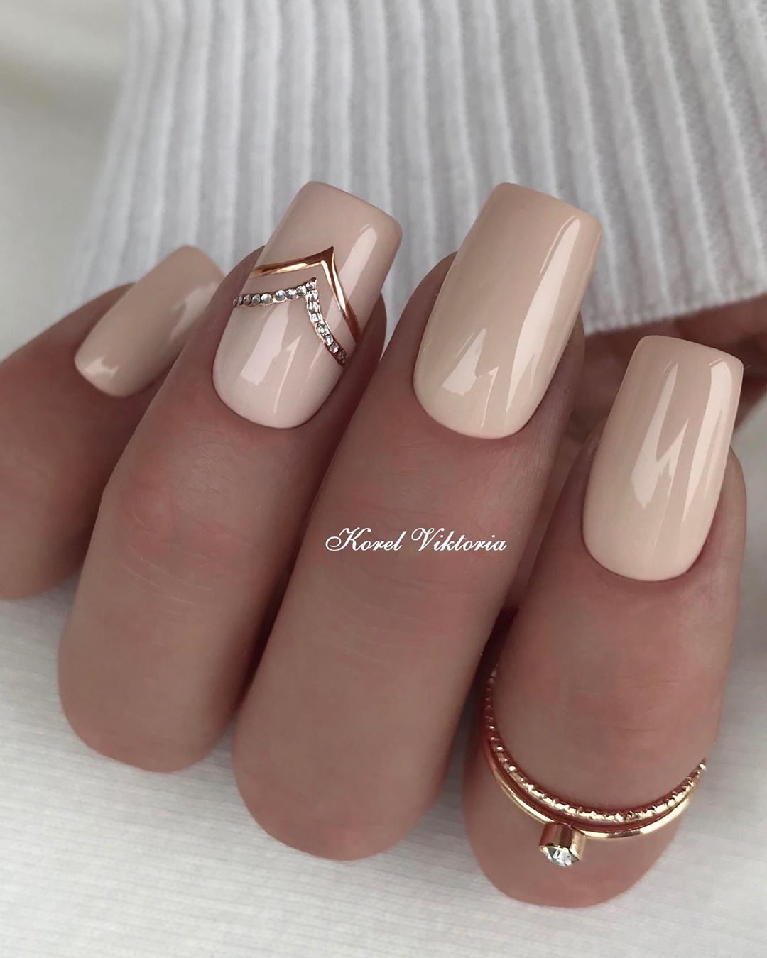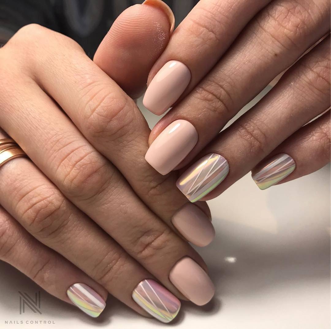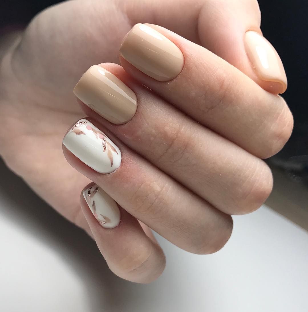 Неоспоримым плюсом натурального маникюра бежевым гель- лаком является то, что, сливаясь с цветом кожи, он зрительно удлиняет пальцы. Таким образом, дизайн в бежевом оттенке — это идеальный вариант для коротких ногтей. Кроме того, он абсолютно универсален и прекрасно гармонирует с цветным декором.