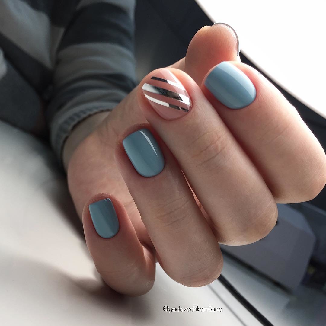 Универсальные варианты, подходящие под любую длину и форму ногтей. Они отлично смотрятся в сочетании с весенне-летними трендами, а голубые пастельные тона задают тренд в зимнем маникюре 2023 года.