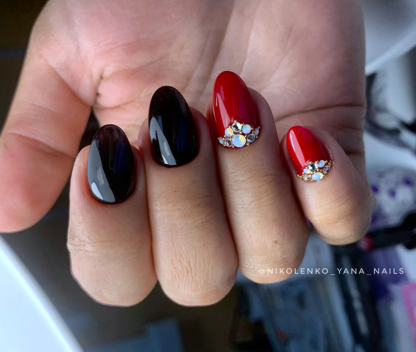 Акцентирует внимание на женских руках, но также позволяет замаскировать неровности пластин и небольшие внешние дефекты. Ассортимент любого бренда достаточно широк, поэтому есть возможность выбрать стразы различных цветов и размеров
