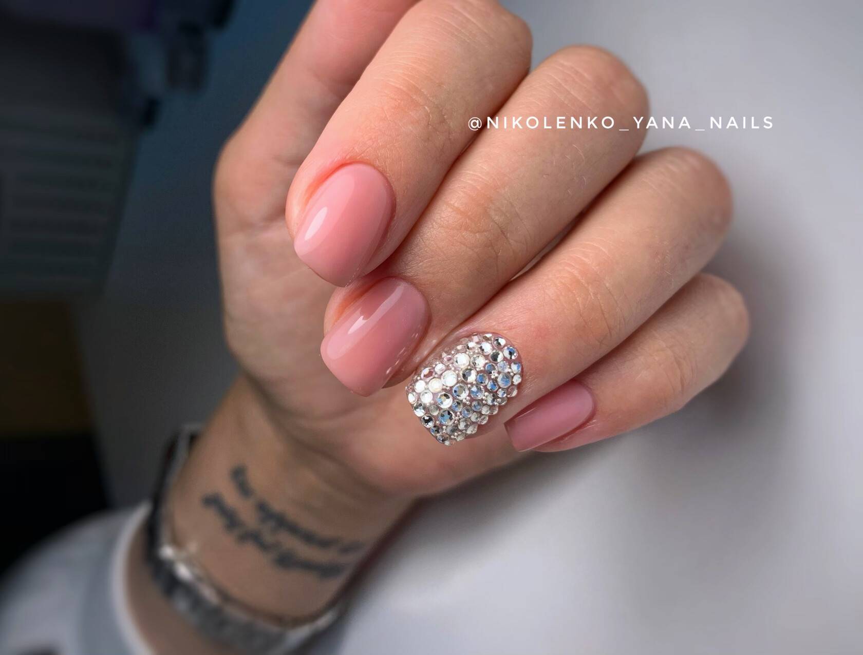 Элегантный дизайн маникюра со стразами многогранен и роскошен. Уместен и для вечернего выхода, и в дневное время суток