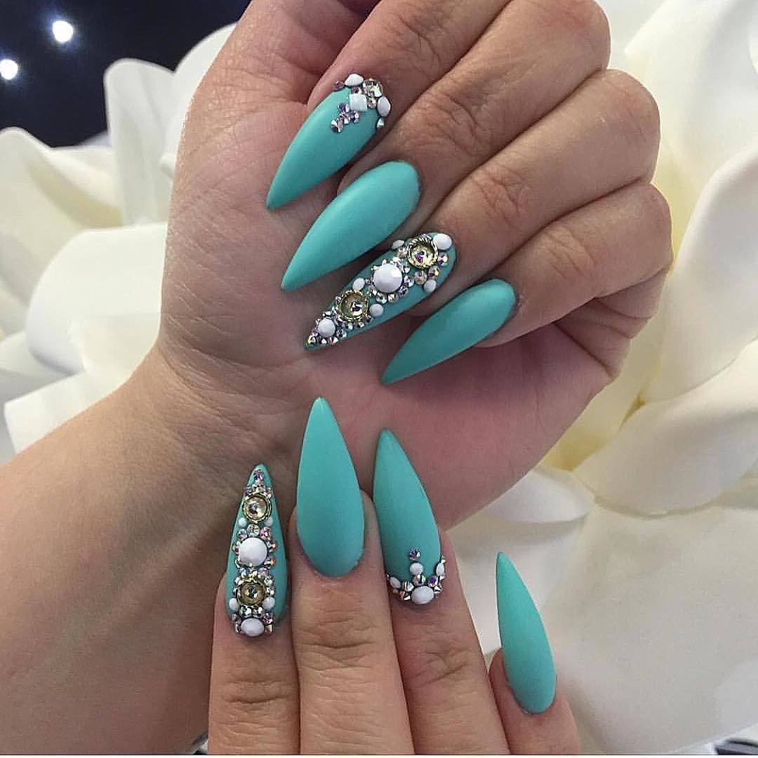 Стразы на острых длинных ногтях