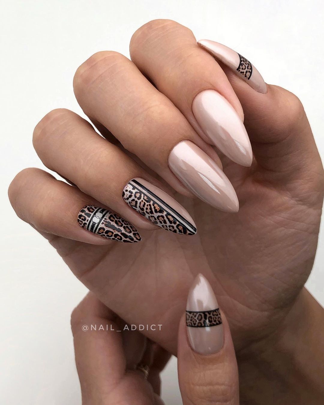 Сегодня особой популярностью пользуется леопардовый маникюр – звериное отражение на остреньких ноготках хорошенькой девушки.