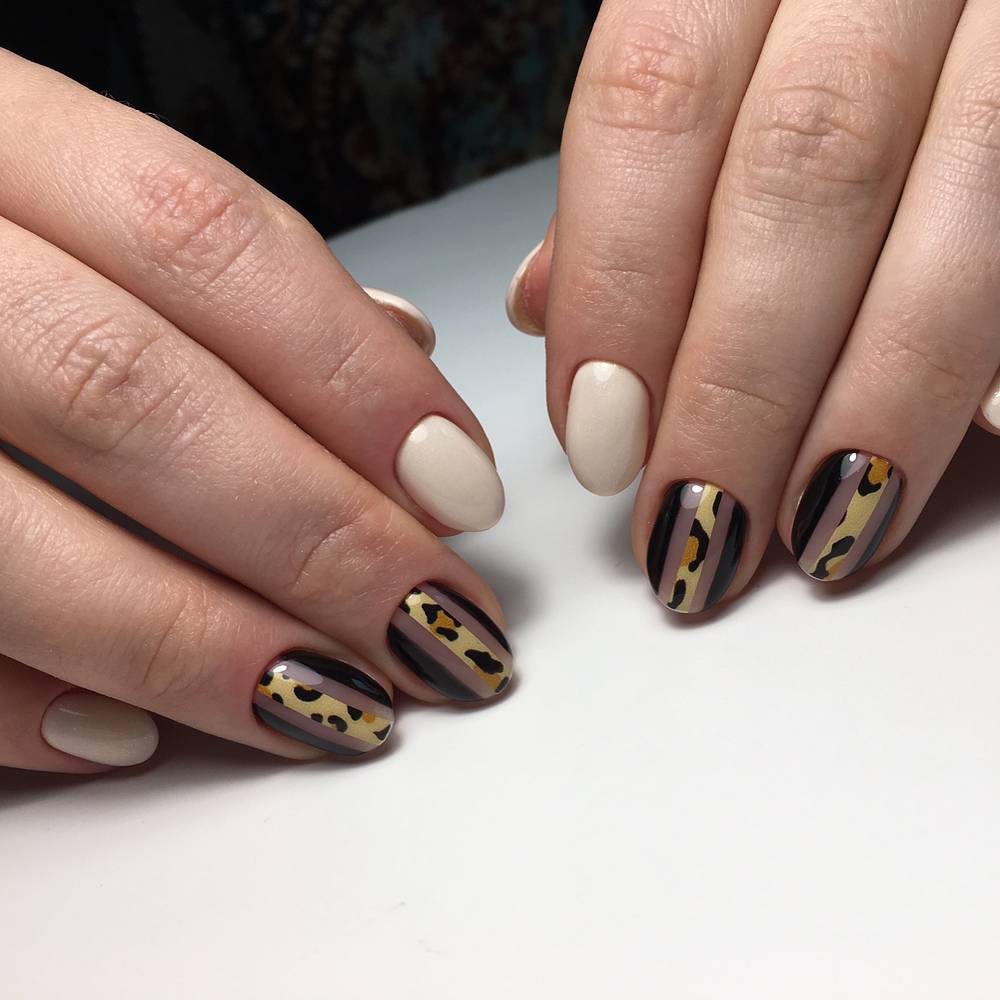 Зачем ограничиваться только хищником? На ногтях можно нарисовать и другие популярные мотивы — зебра, корова, жираф. Все они могут сочетаться в одном маникюре, если выполнены акцентно и на нейтральной базе.