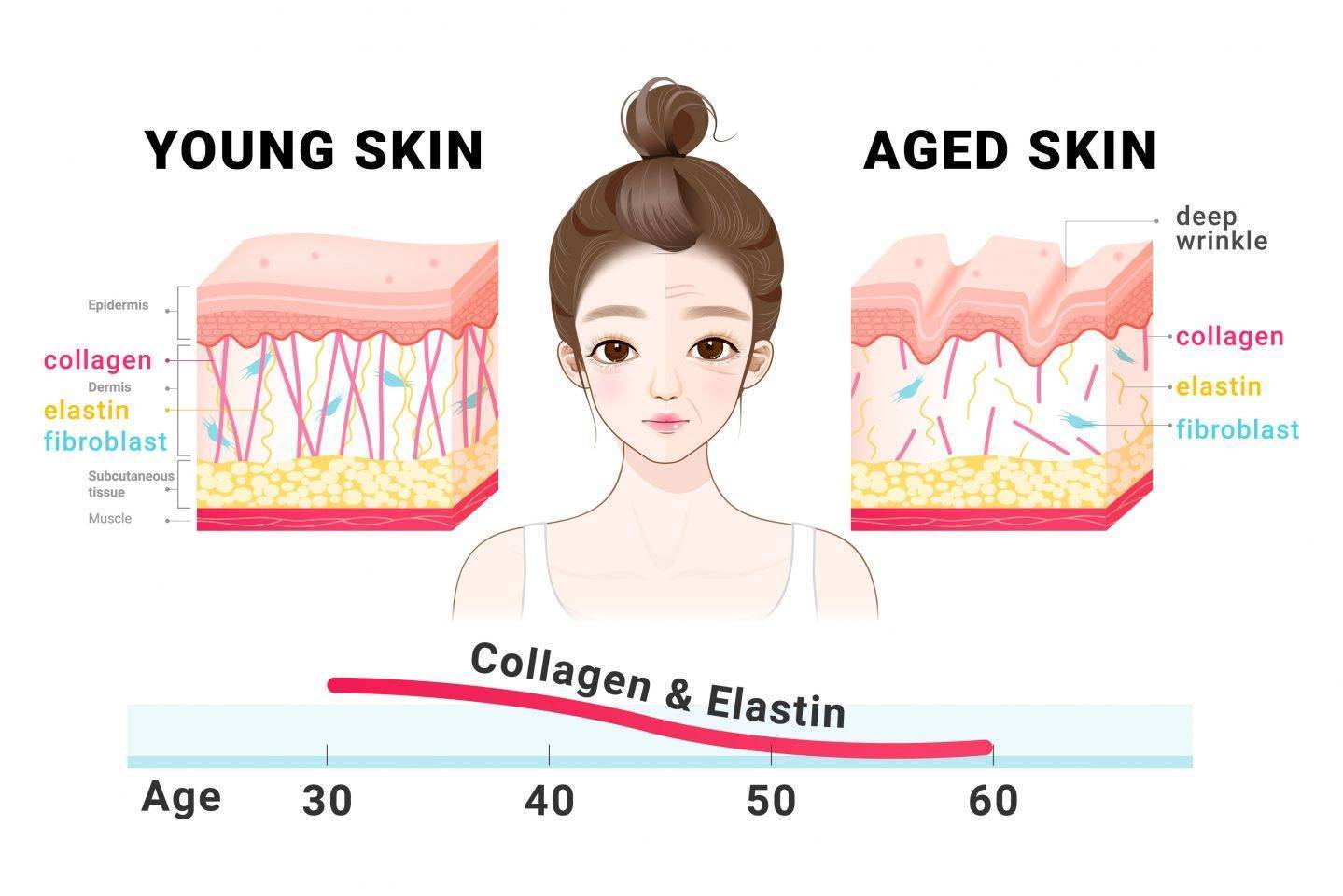 Старение кожи: снижение количества белка приводит к образованию морщин.