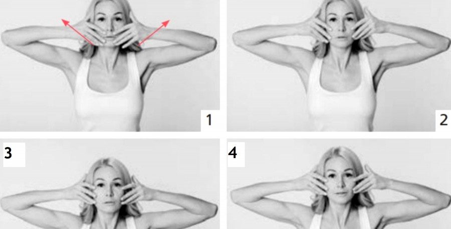 - Ладонями зафиксируйте губы, носогубные складки, щеки и подбородок.