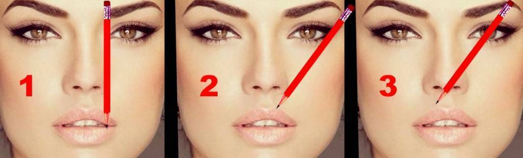- Первую точку можно найти, если приставить к крылу носа что-нибудь ровное, например, линейку или косметический карандаш — она там, где предмет пересекается с линией бровей.