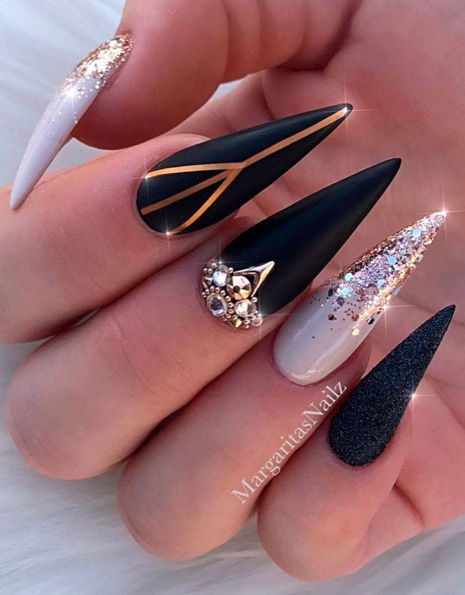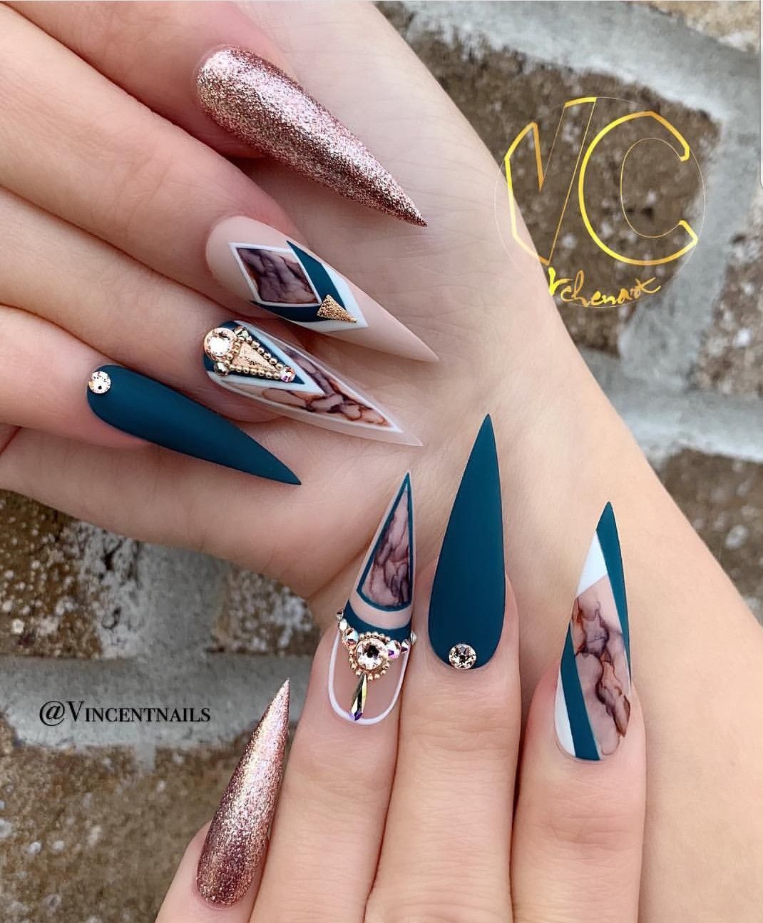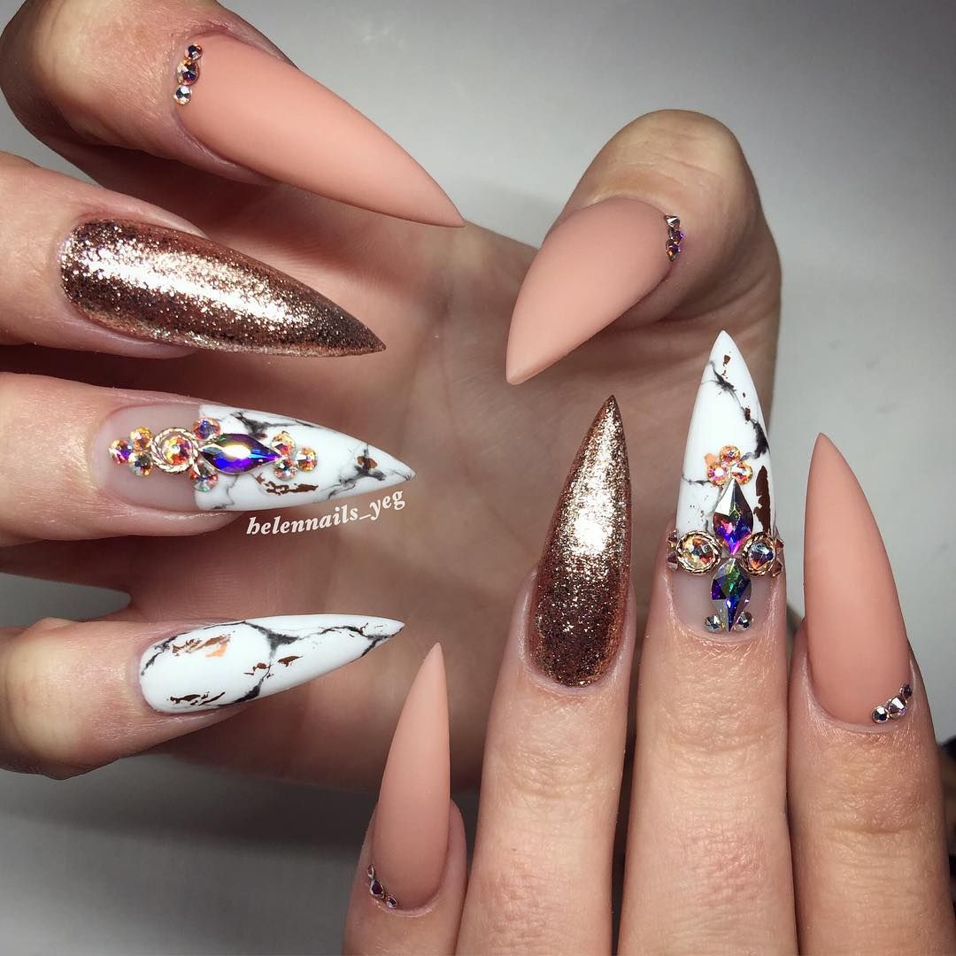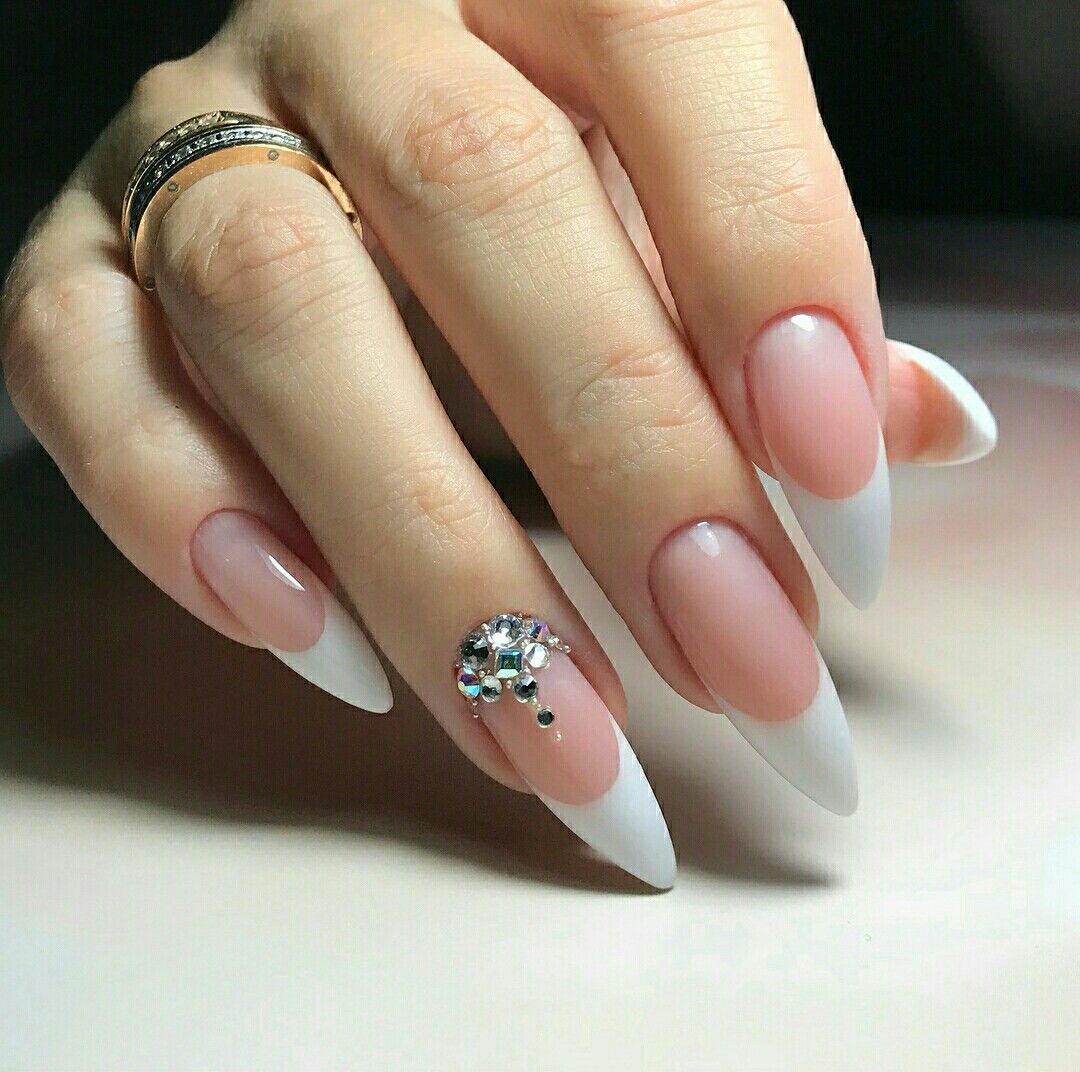 Достаточно экстравагантный вариант оформления ногтевых пластин. Выполняется такая форма маникюра на длинных ноготках. Особенность такой формы – заостренный кончик. Из-за своей неординарности и необычности, она имеет скромный круг поклонниц. Такой маникюр выбирают как правило эпатажные девушки, с яркой внешностью, которые стремятся всегда быть в центре внимания.