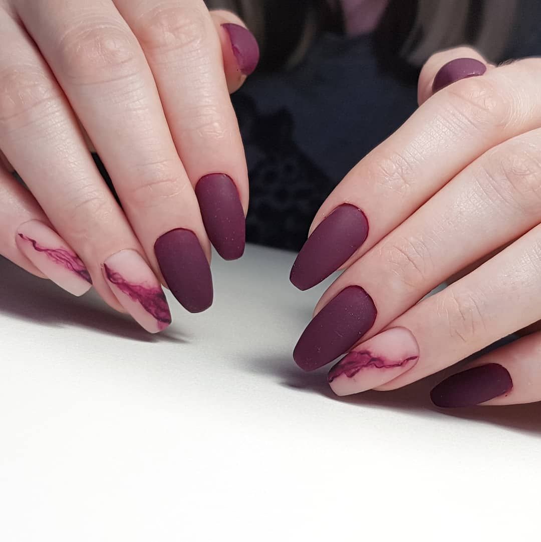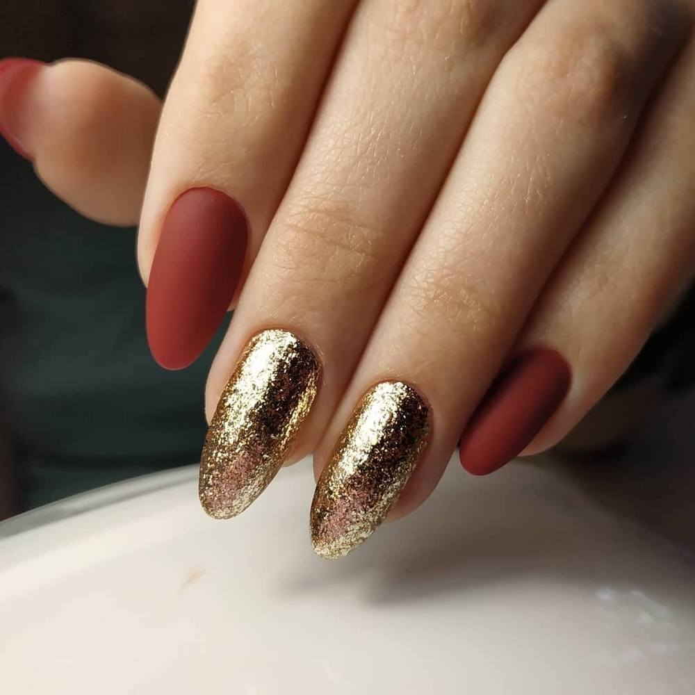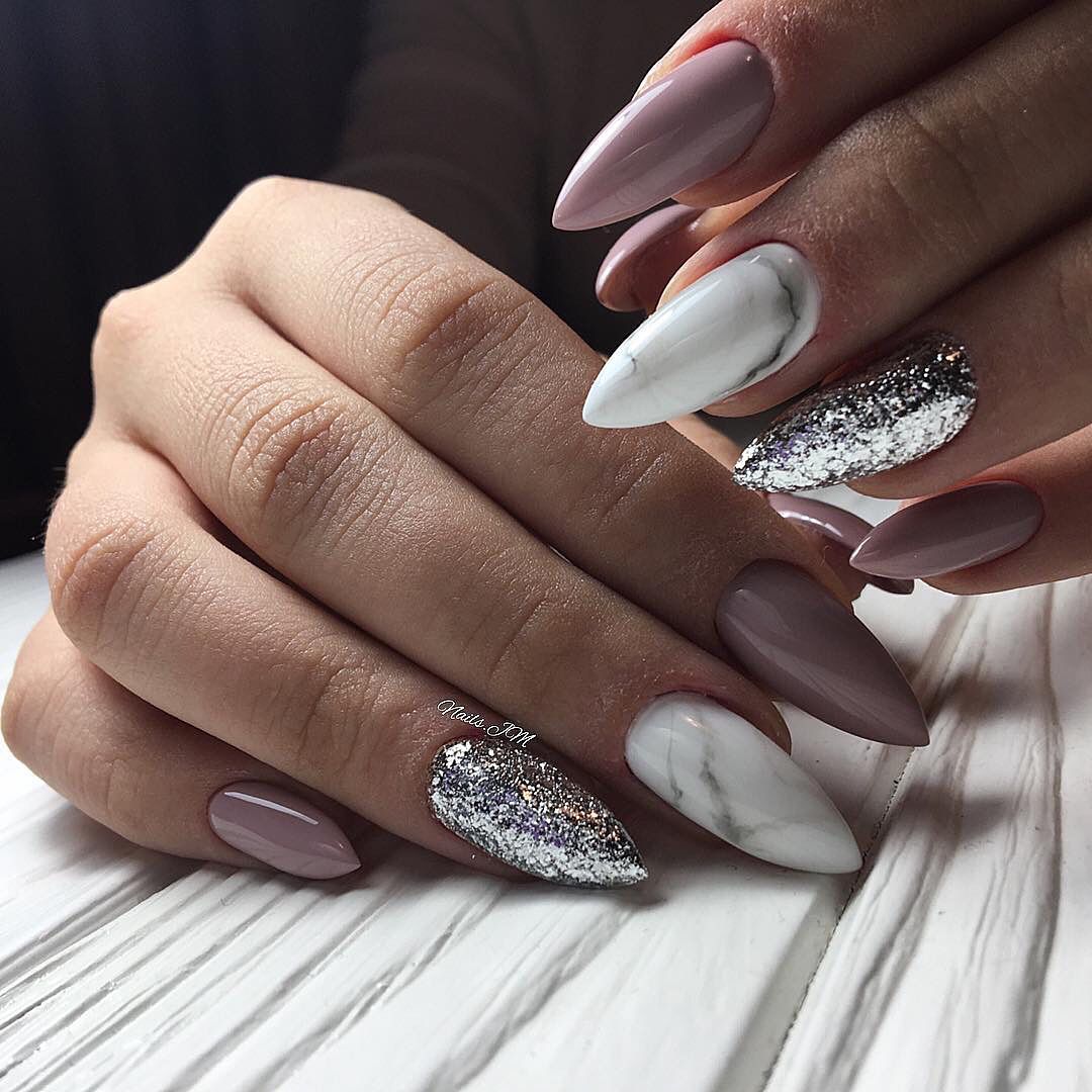 Всегда в тренде, за счет своей универсальности. Дизайн ногтей округлой формы может быть любым. Очень часто для оформления используются лаки с глянцевым и матовым эффектом. Комбинируя их можно получить красивый результат. Также для дизайна применяют блестки мелкого помола, акриловую пудру, бархатный песок.