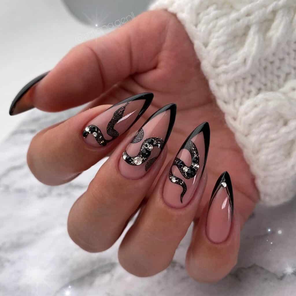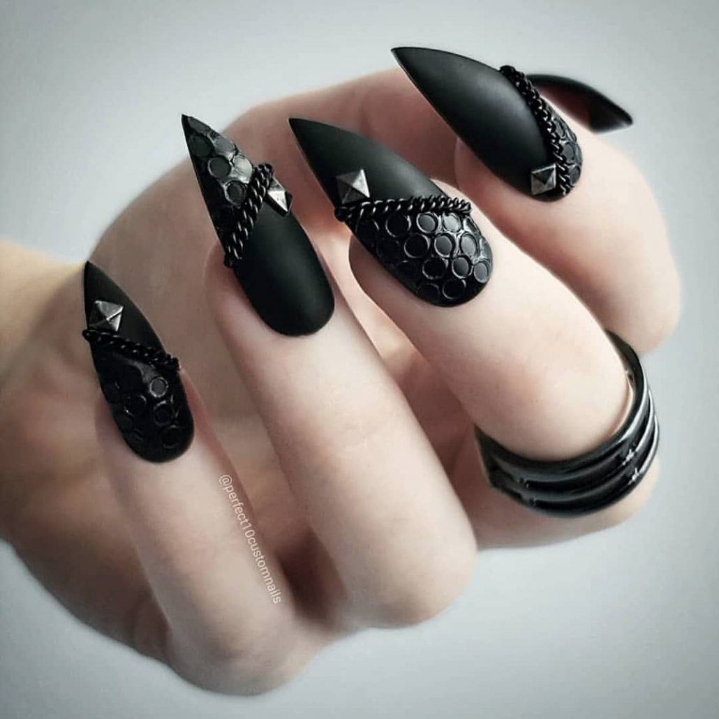 Такие ноготки совершенно не подходят для повседневных образов, но отлично смотрятся в тематических луках, например, на Хэллоуин, Новый год и другие события. Нестандартная форма ногтей чаще всего сопровождается таким же декором. Это могут быть скелеты, лица, тыквы или новогодние узоры.