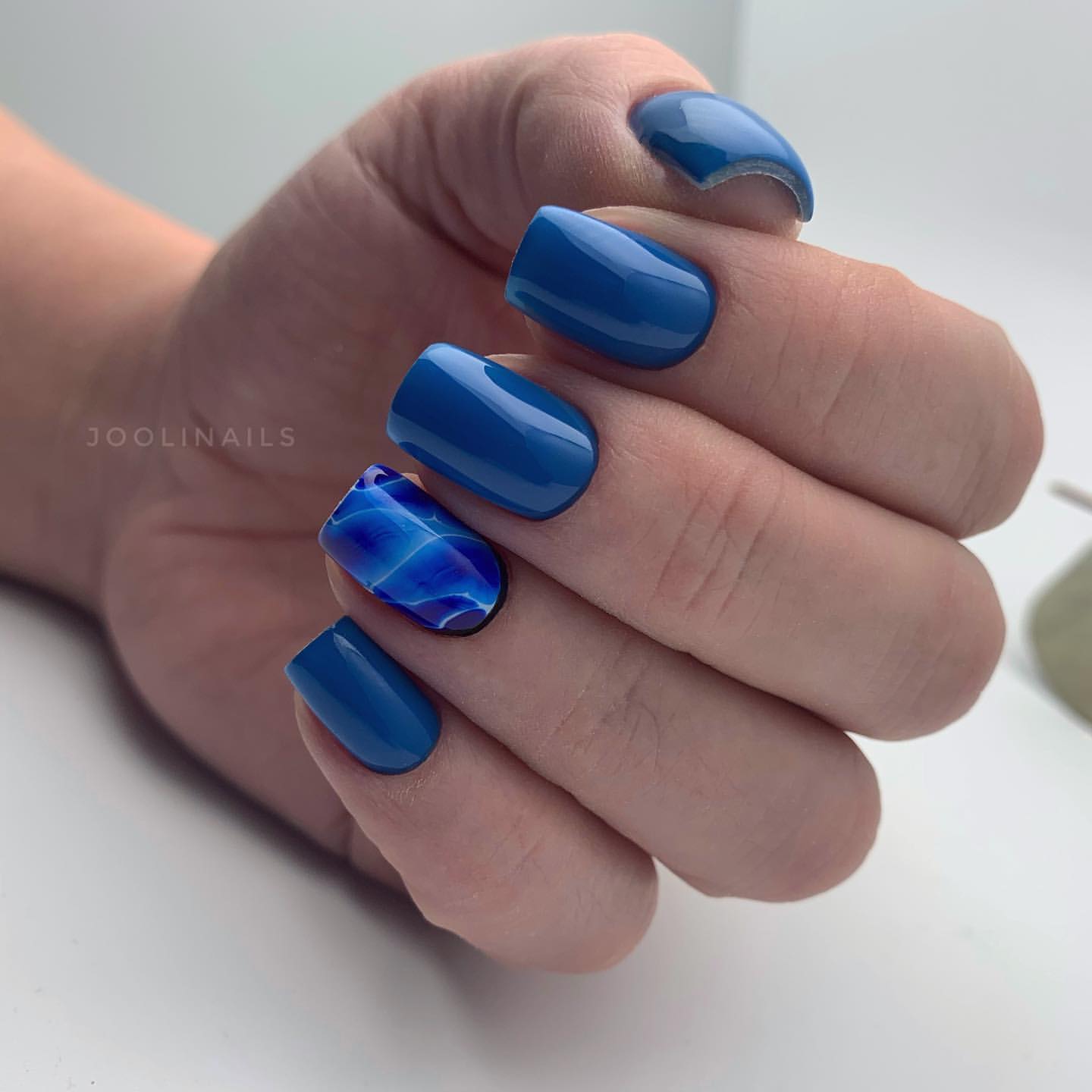 Синие, акриловые ногти квадратной формы просто отлично подходят как для летних, так и для зимних месяцев. Также большим плюсом этого маникюра является то, что вы можете стилизовать их под любой наряд.