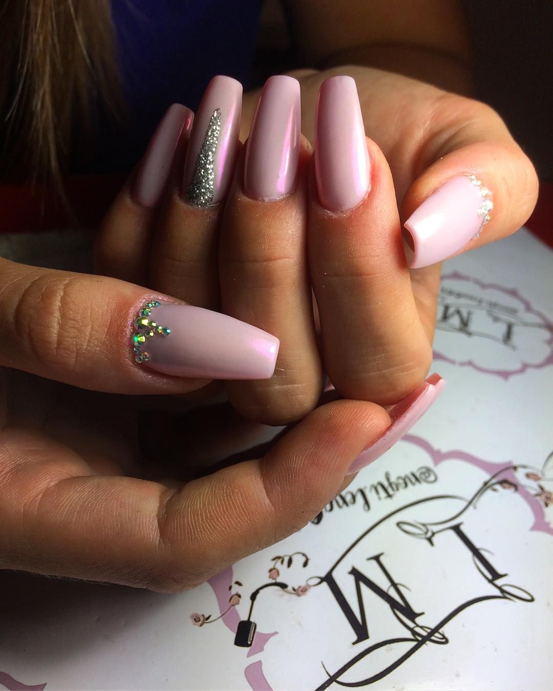 Балерина – начинает обретать бешенную популярность среди девушек, которые любят длинные ногти. Она является нечто средним между миндалевидной и квадратной формой ногтей