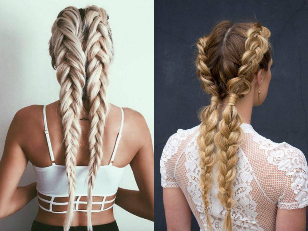 Еще более изысканно и необычно будут выглядеть сразу две французские косы наоборот. Для создания такой прически вам потребуется несколько больше времени, терпения и внимания, но это того стоит.