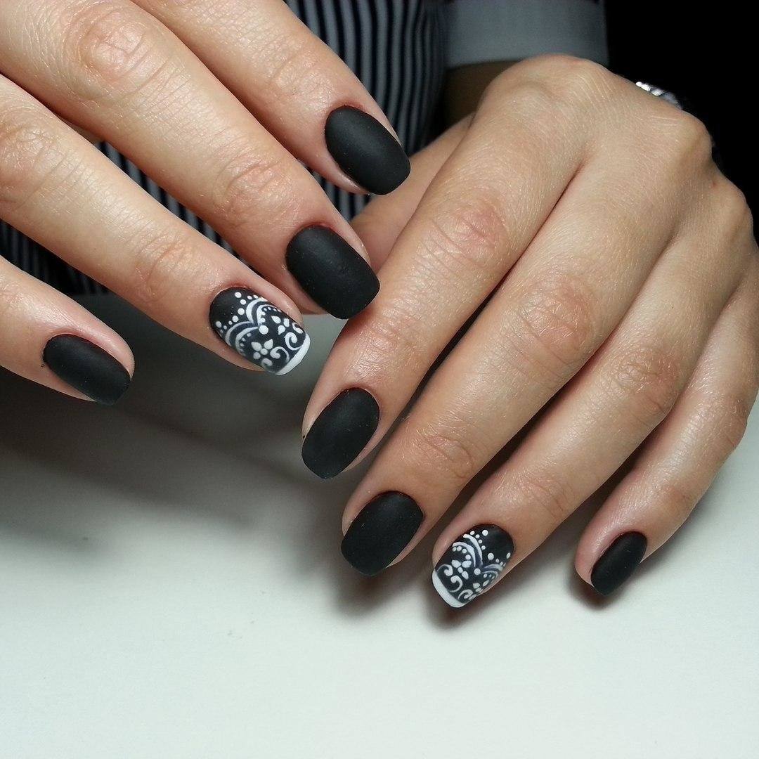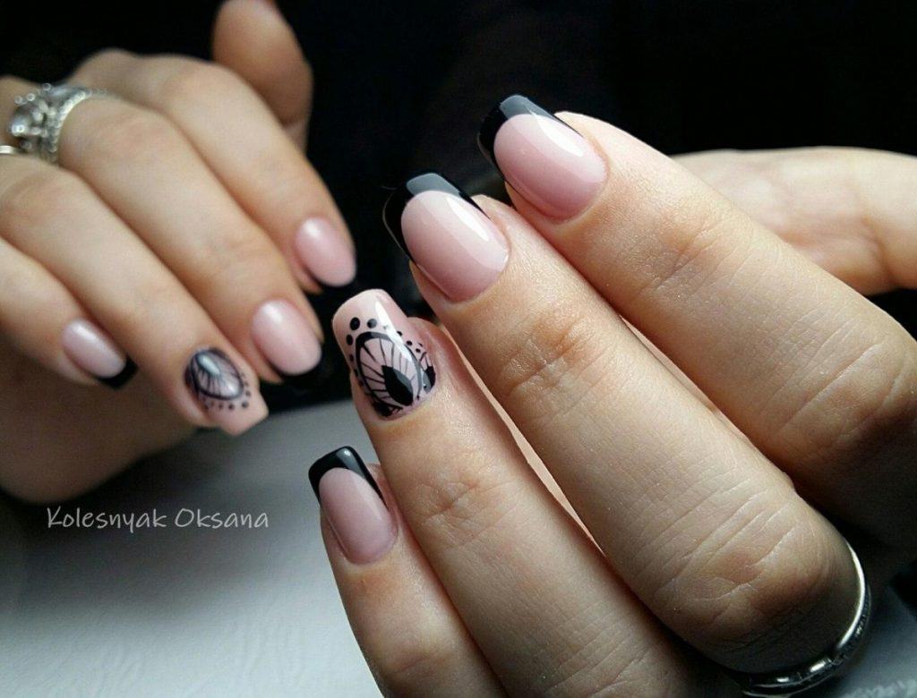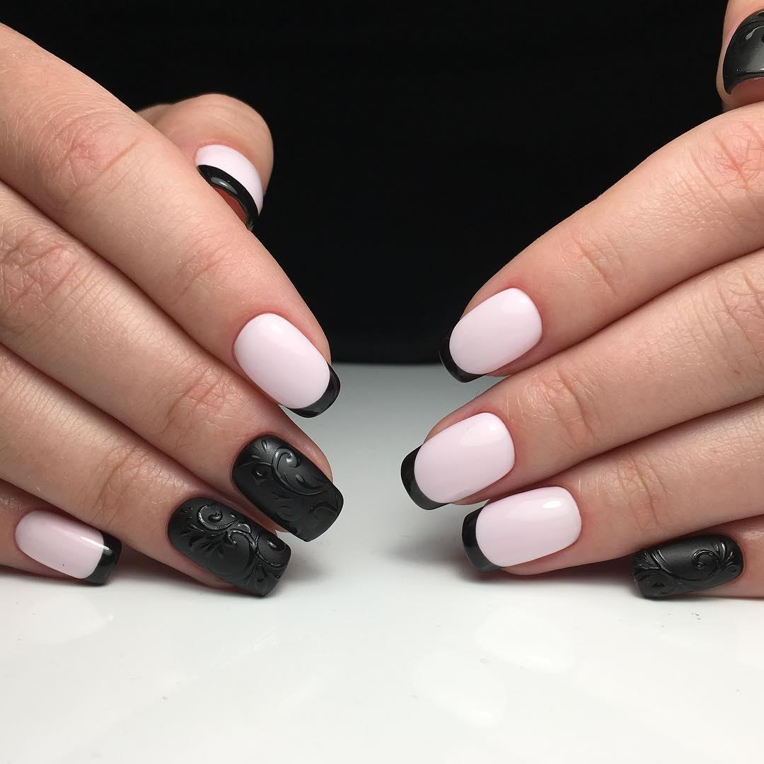 Чёрный френч также в моде. Он всегда выглядит несколько загадочно. Он более демократичен, чем красный, его прекрасно можно сочетать с любыми цветами, наносить рисунки, украшать ногти стразами.