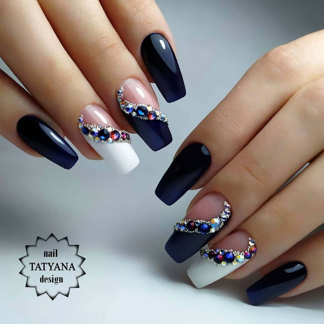 Острые ногти со стразами 2020: идеи эффектного дизайна ногтей