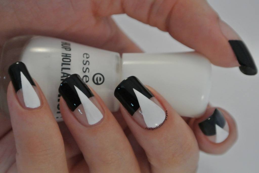 Одно из самых интересных решений. Кайма здесь будет шире обычной, выполняется она по диагонали. Остальное — дело фантазии: совмещение чёрного с белым, оформление блёстками или стразами. Техника для тех, кто любит нетривиальный подход во всём.