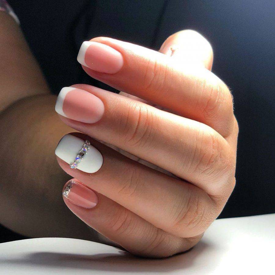 На коротких ногтях желательно делать френч в классическом его исполнении: с белой или светло-бежевой полоской. Ногти станут выглядеть ухоженно, не будут бросаться в глаза, а главное визуально удлинят ногтевую пластину.
