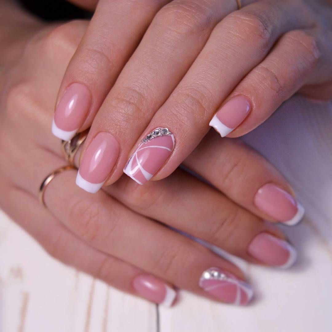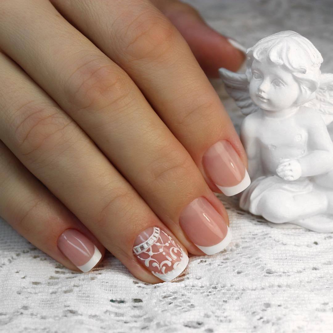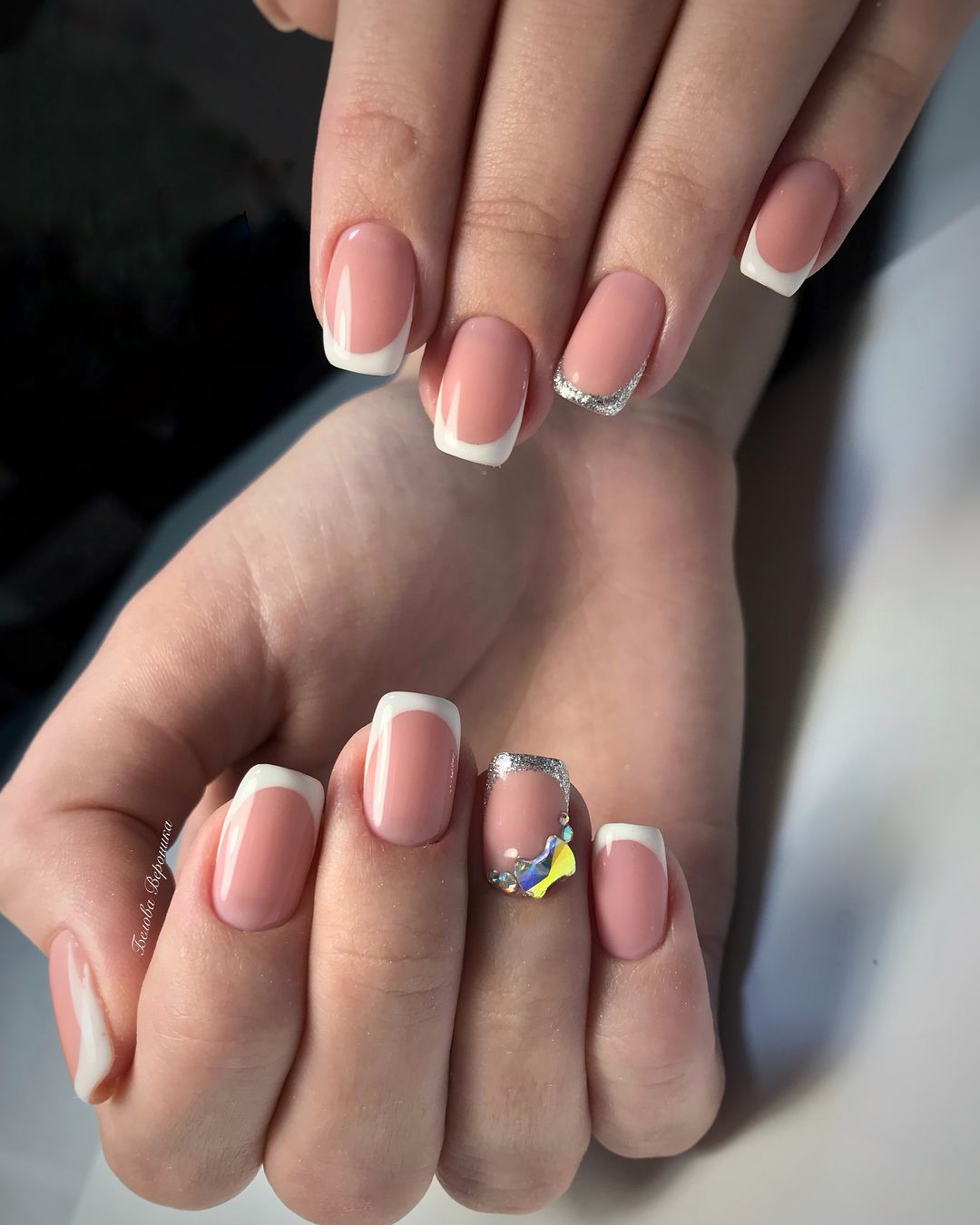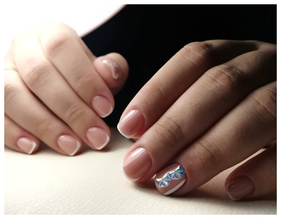 Классика всегда в моде. Какой она должна быть? База — максимально нейтральная и естественная (нюд, прозрачный розовый или молочный), улыбка — ровная средней толщины. Классическая каемка всегда белая. И, наверное, классический французский маникюр лучше всего подходит для дополнительного дизайна. Нейтральная база сможет подружиться с любым — самым ярким и блестящим — дизайном.