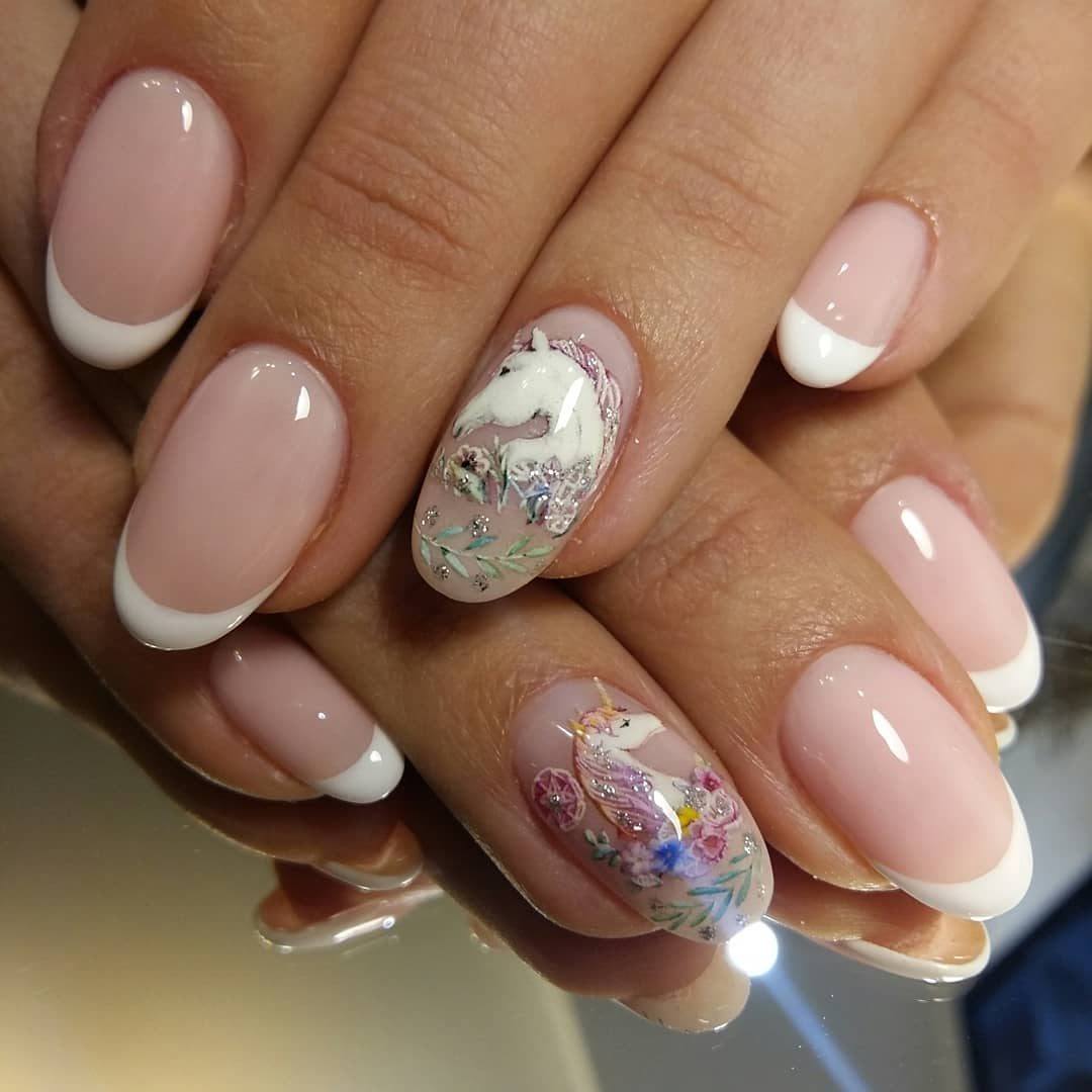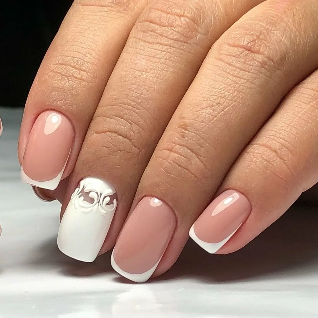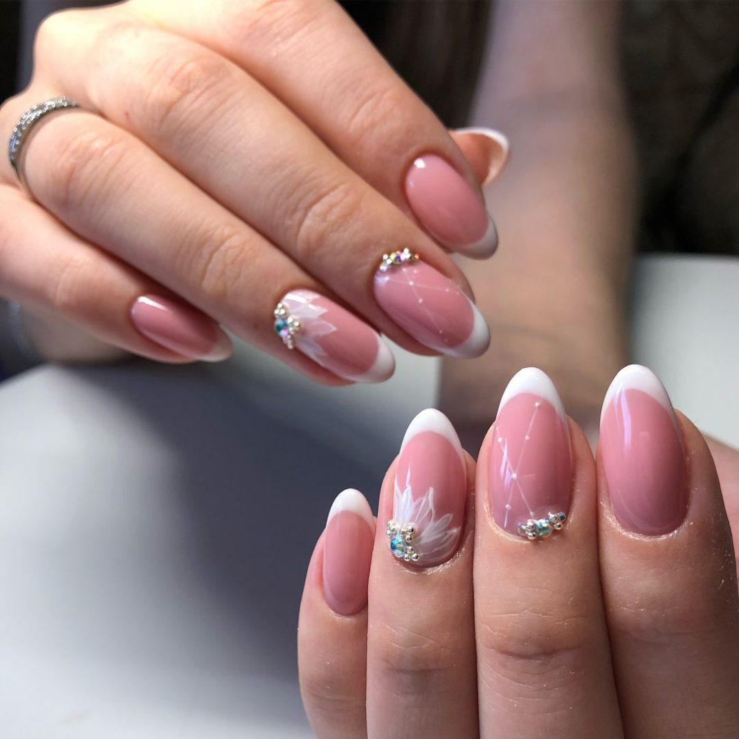 Классика всегда в моде. Какой она должна быть? База — максимально нейтральная и естественная (нюд, прозрачный розовый или молочный), улыбка — ровная средней толщины. Классическая каемка всегда белая. И, наверное, классический французский маникюр лучше всего подходит для дополнительного дизайна. Нейтральная база сможет подружиться с любым — самым ярким и блестящим — дизайном.