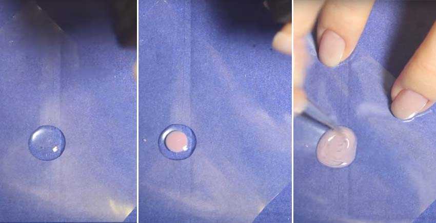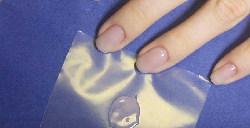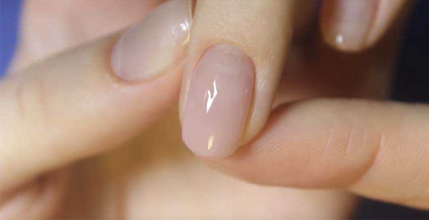 - Сначала пластину протирают обезжиривателем, чтобы очистить поры. Затем ноготь высушивается и наносится базовое покрытие. В зависимости от марки, его следует сушить под лампой в течение 1-1,5 минут;