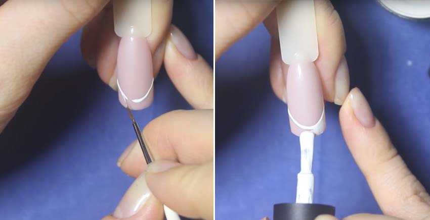 Если вы не знаете, как сделать аккуратный французский маникюр в домашних условиях с помощью гель-лака, вы можете использовать различные кисти. В этом варианте создания классического дизайна полоска белого лака для ногтей рисуется вручную.