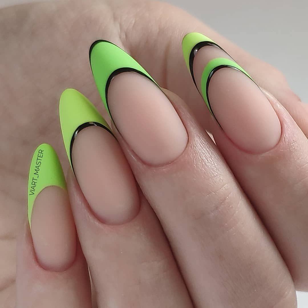 Маникюр с использованием техники color-blocking (контрастное сочетание блоков ярких цветов) не теряет популярности, и мы от этого только выигрываем. Весной 2022 года выберите цветовой дуэт по своему вкусу и оформите ногти в технике французского маникюра.