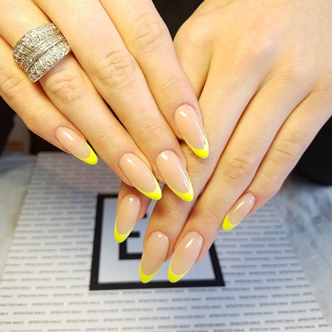 Хотите носить весной яркий, броский, энергичный маникюр? Тогда обратите внимание на желтый, но не обычный, а с неоновым эффектом. Он великолепно проявит себя на длинных ногтях