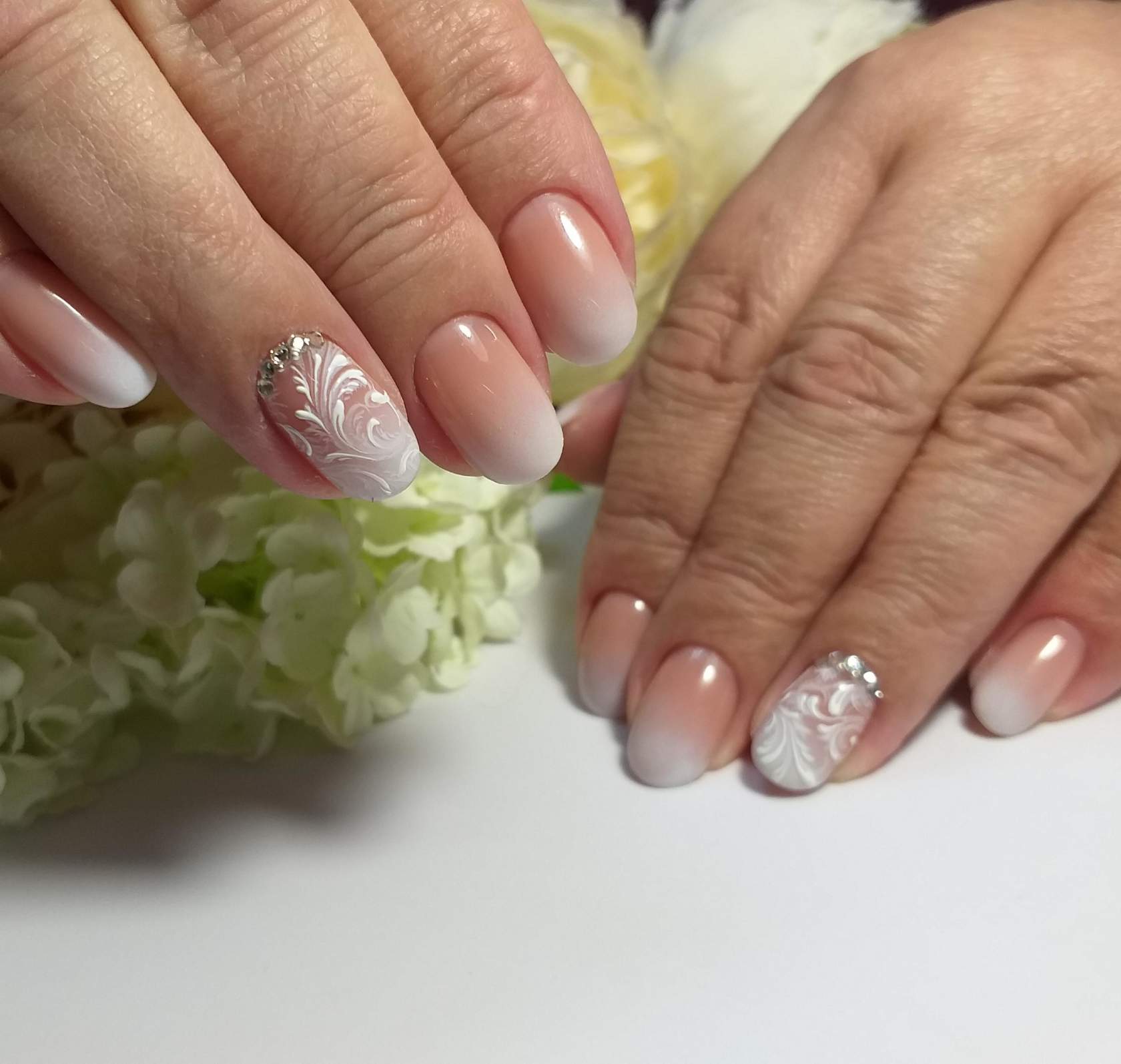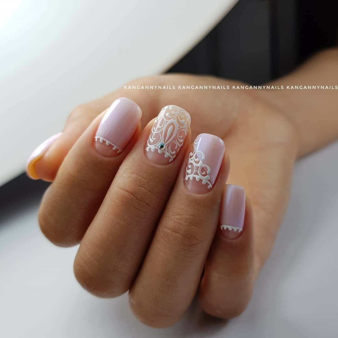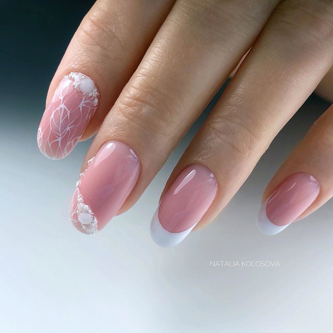Это отличная база для цветочного маникюра. На белом фоне можно создавать цветы самых разных оттенков. Кстати, такая база способна уравновесить самый активный дизайн. Смело украшайте рисунки стразами, блестками или фольгой. Если белый цвет кажется вам слишком активным, замените его на молочную базу.