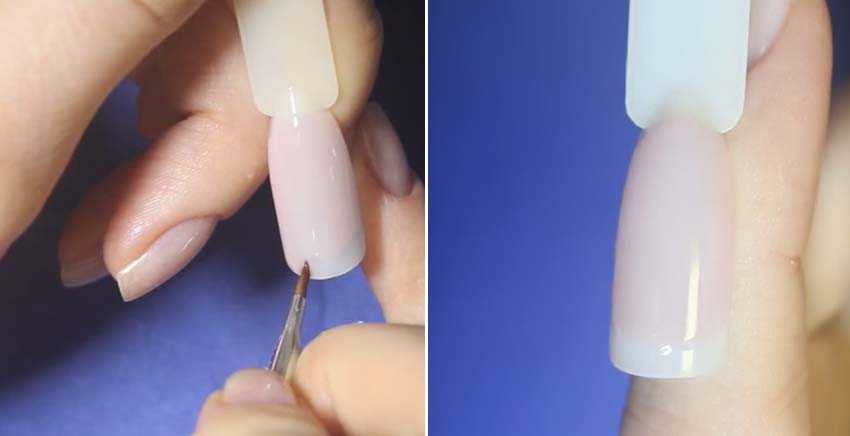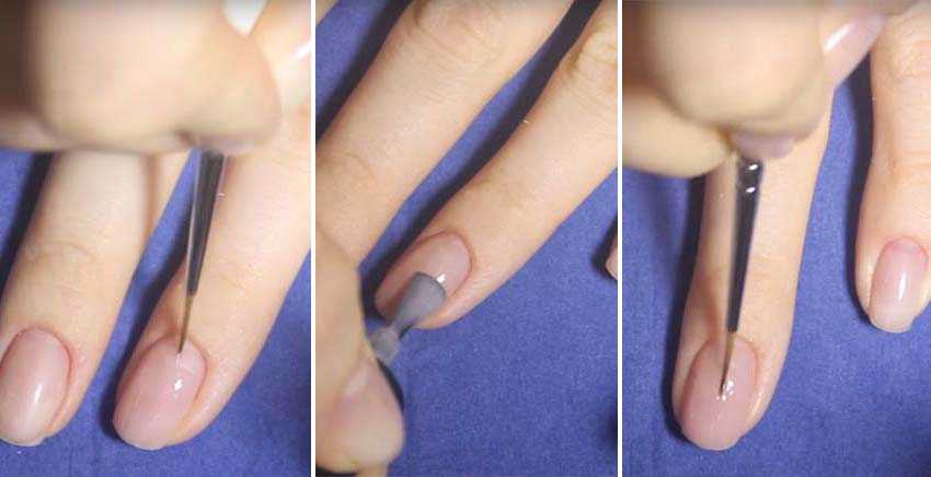 - Используйте плоскую сторону кисточки для запечатывания краев ногтя, чтобы избежать сколов и трещин;