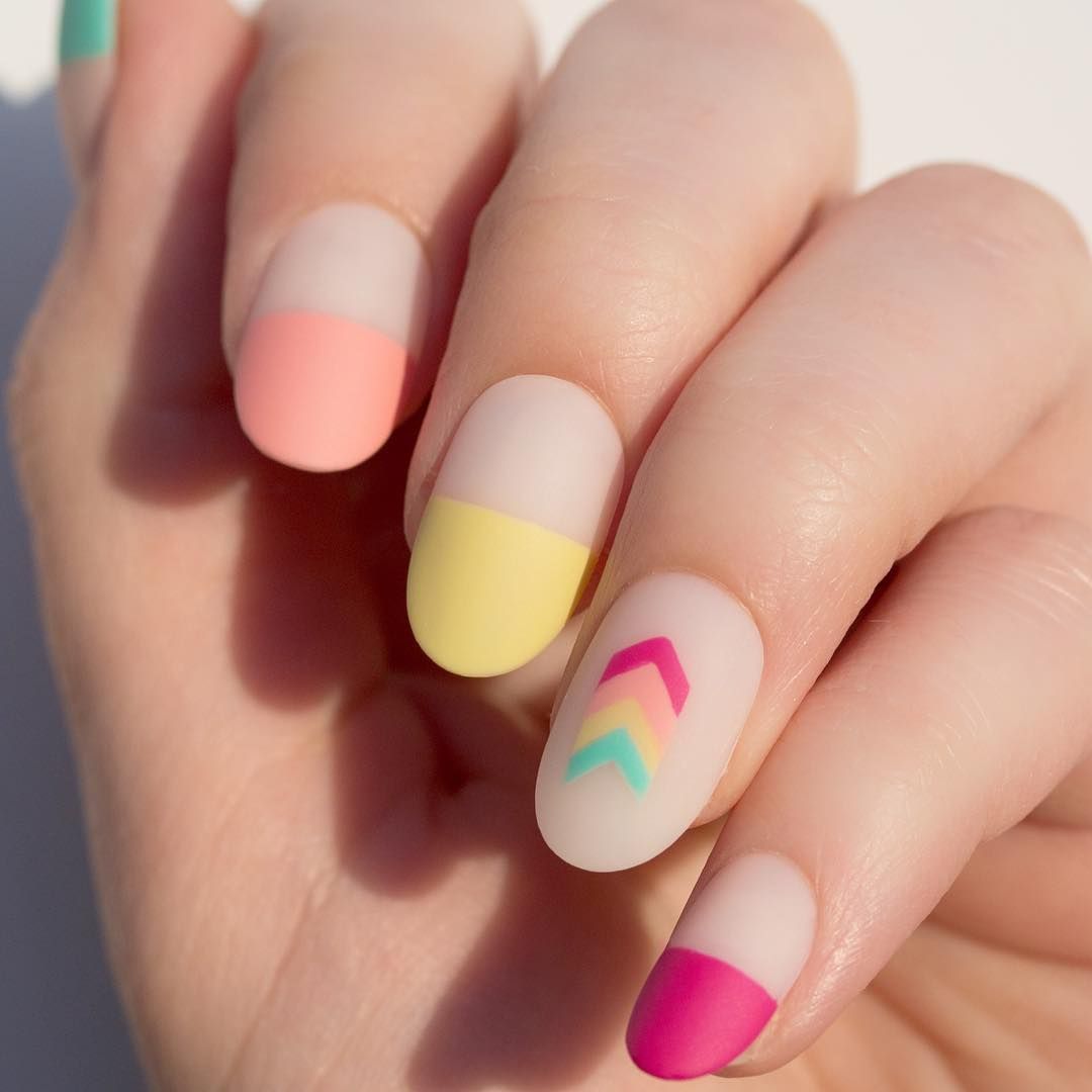 Если в вашей косметичке завалялось около десятка цветных лаков для ногтей, самое время взяться за дело. Этим летом выбирайте разные цвета для каждого ногтя или попробуйте “светлый” вариант, как на фото ниже.