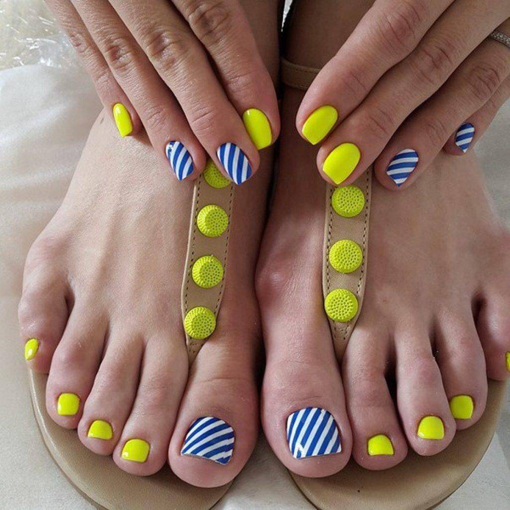 Яркий маникюр и педикюр в одном стиле на лето или просто для поднятия настроения.
