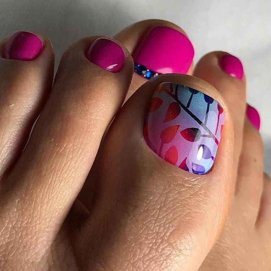 Необычным педикюр будет смотреться, если ноготь покрывают несколькими цветами, которые постепенно переходят от одного оттенка к другому.