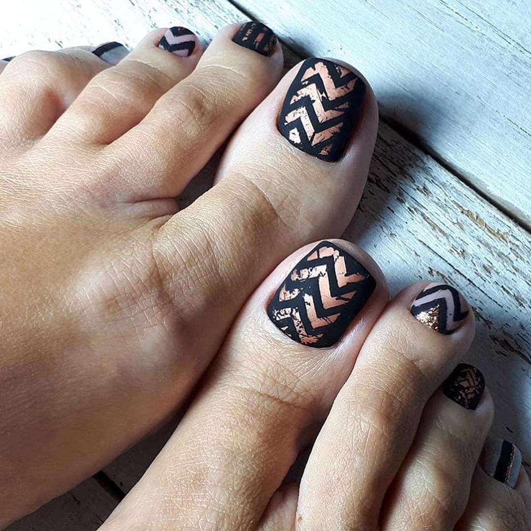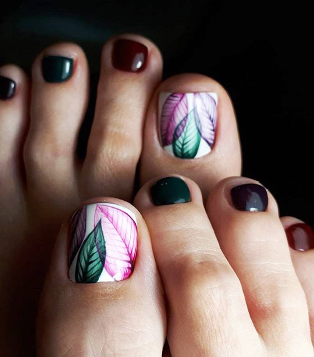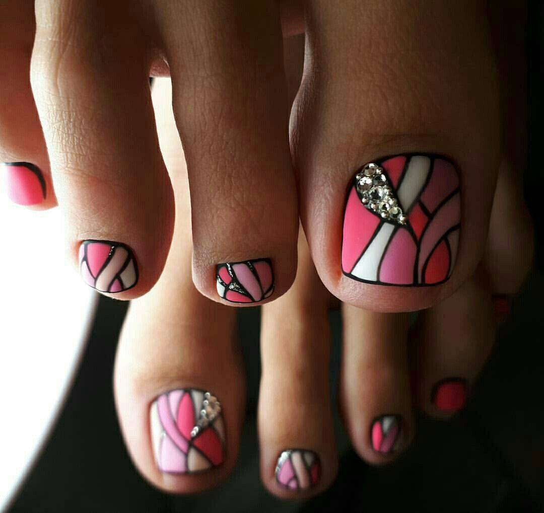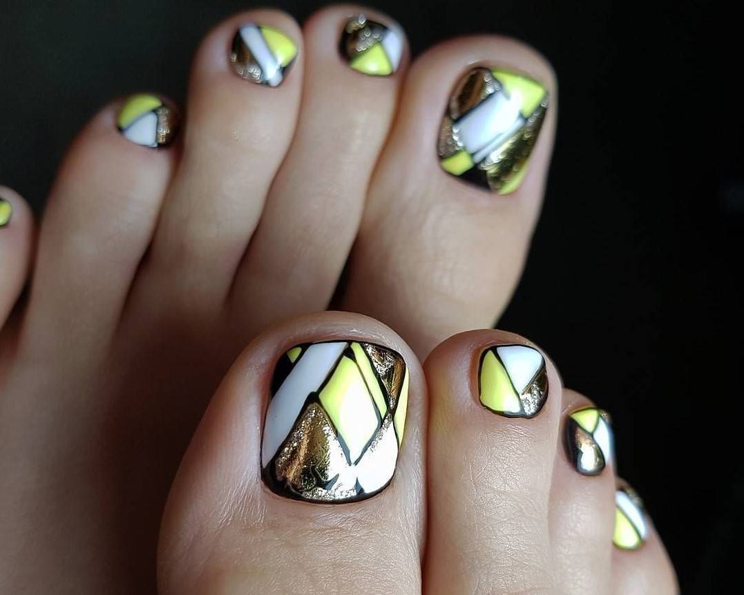 И про модные абстрактные рисунки – фигуры, кляксы, линии. На пальцах ног рисовать их тяжело – слишком маленькая площадь, за исключением большого.