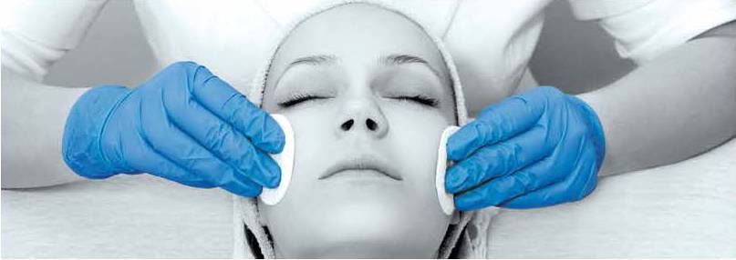 - Сначала косметолог проводит тщательное очищение кожи и подготовку к пилингу с помощью специальных средств.