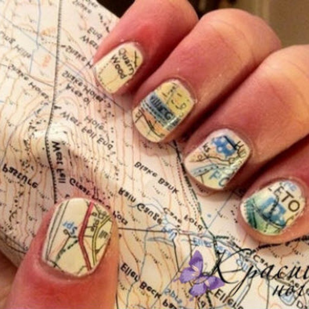 Еще один вариант получить нестандартный дизайн – использовать вместо текста карту какой-нибудь местности, нотный лист, долларовую купюру, журнальные иллюстрации. В лаки часто добавляют блестки.