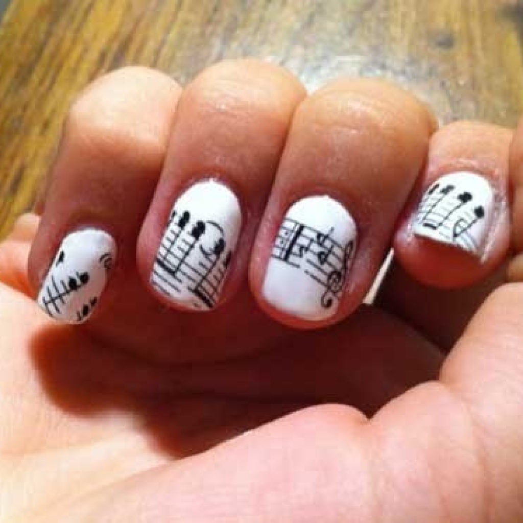 Неординарно и эффектно смотрится на ногтях нотный стан