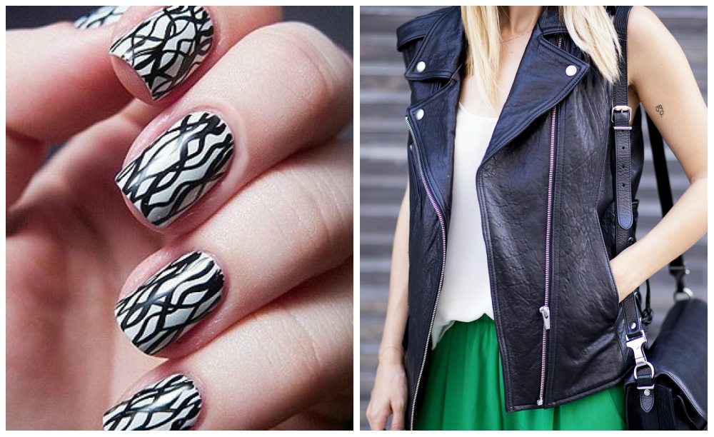 Блестящие элементы идеально подойдут к этому тандему. Золотой лак, вкрапления фольги, наклейки, глиттеры, стразы и даже перья – из этого можно выбрать любой вариант, подходящий для вашего образа.