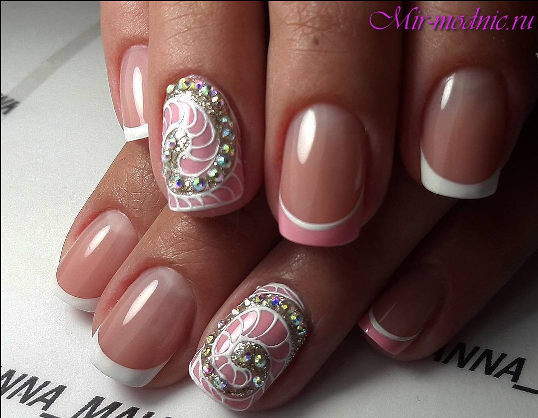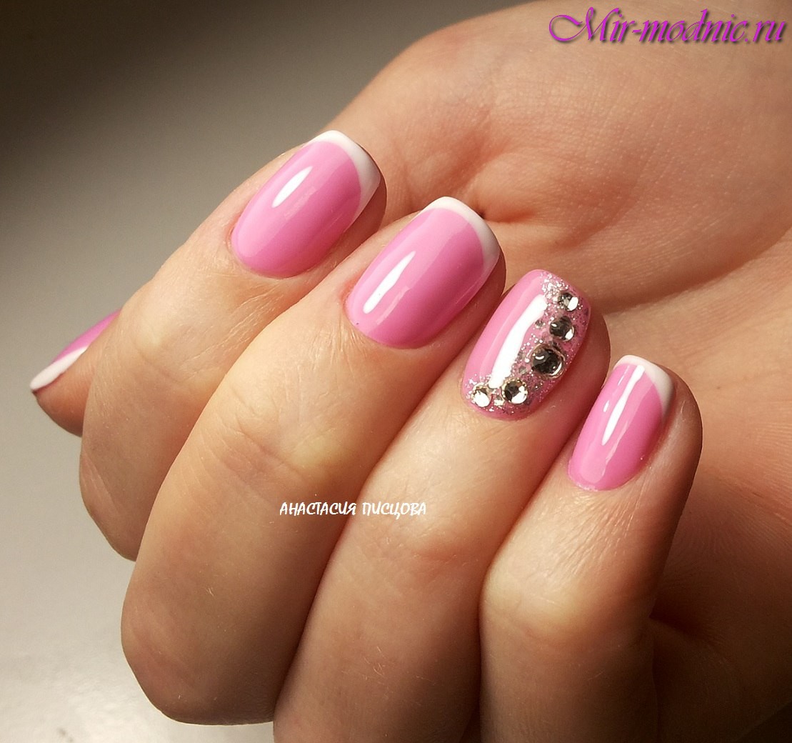 Гель лак розовый дизайн с френчем фото