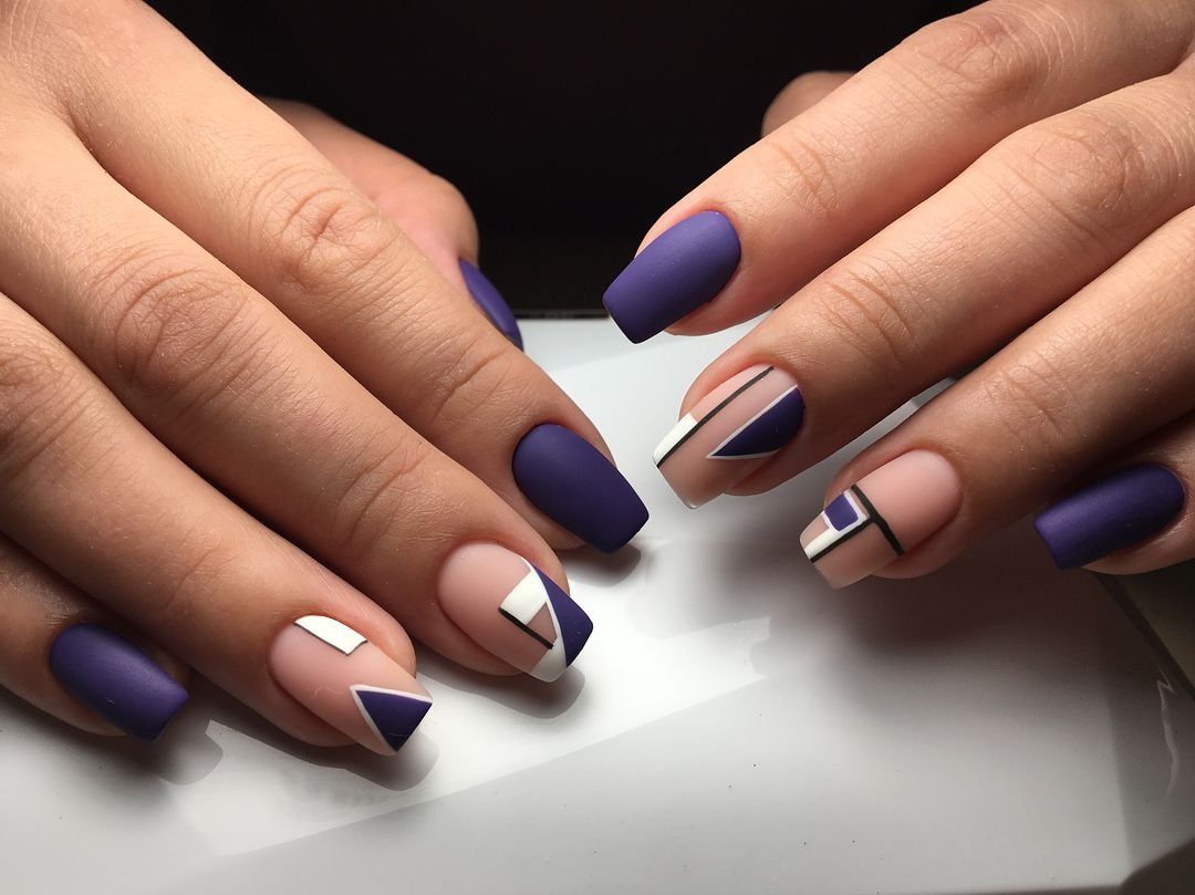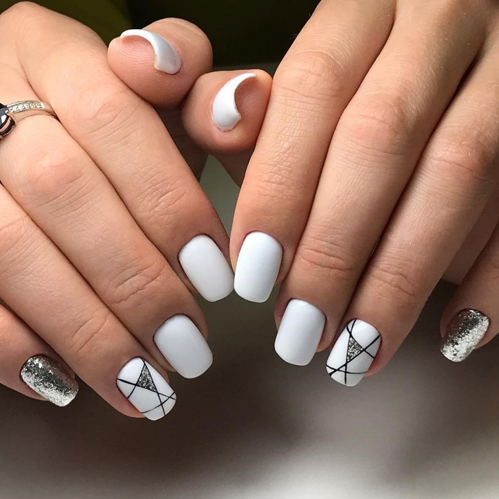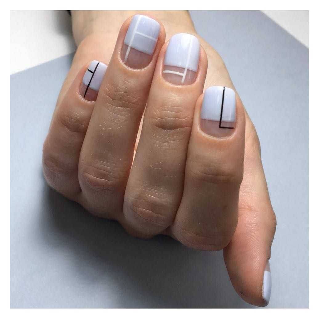Хорошо подходит для минималистского нейл-арта. Часто в качестве основания используется база. Геометрические формы отделываются черным или белым лаком, но допустимы и другие цвета. Главное, чтобы поверхность была ровной. Альтернативой базовому слою является лак натурального тона.