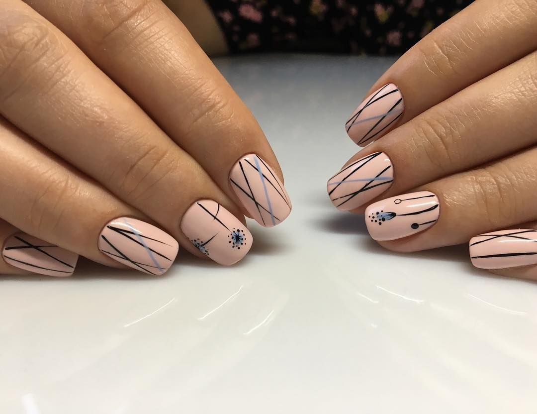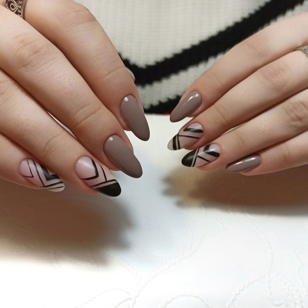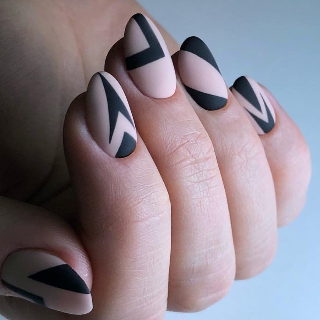 Геометрия в нюдовых тонах 2021 включает в себя модные пастельные оттенки сезона (песочный, бежевый, жемчужный, пыльная роза), а также стильные элементы геометрии. А использование черного и пастельных тонов — это что-то уникальное, этот дизайн ногтей подойдет к любому образу.