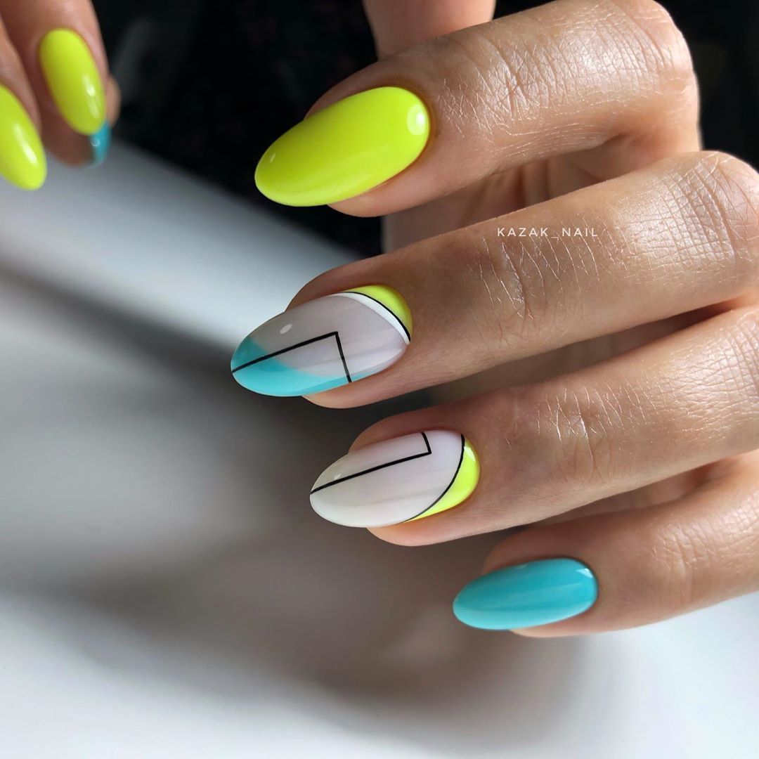 Какие цвета подходят для геометрического маникюра? Разумеется, что все, ведь все зависит лишь от вашей фантазии и эффекта, который вы хотите получить.