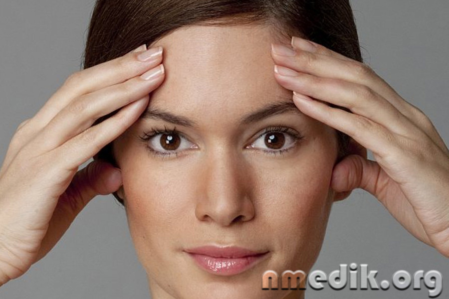 Следующий комплекс рассчитан на область лба, в результате упражнений пропадают морщины, брови приподнимаются и выравниваются. Указательные пальцы необходимо расположить над бровями, согнув подобно дуге. Далее их следует немного опустить вниз. Делать движения бровями то вверх, то вниз, всего 10 раз. На последнем движении брови нужно зафиксировать в приподнятом положении, сопротивляясь пальцам. Во время выполнения упражнения должно ощущаться напряжение.