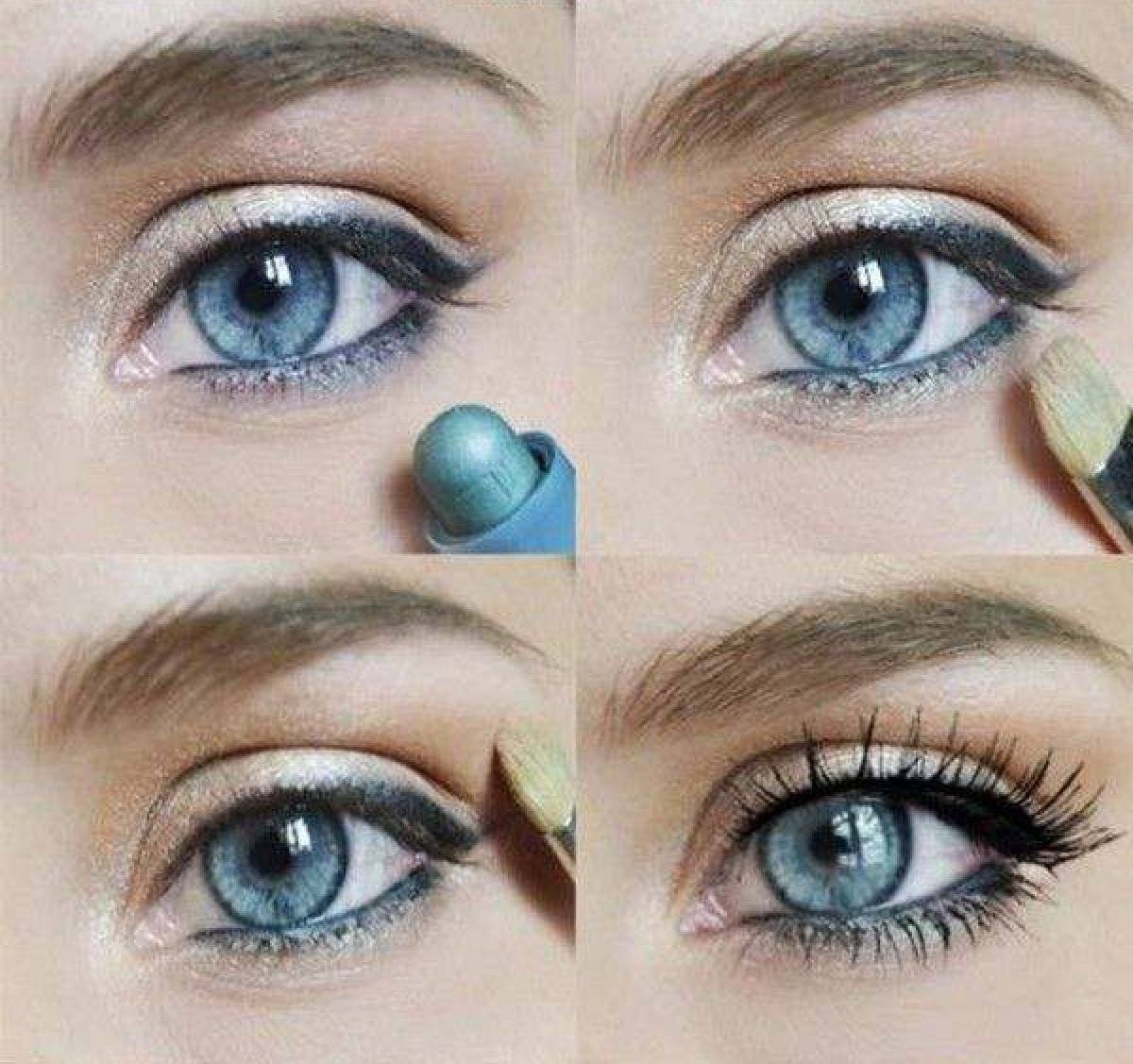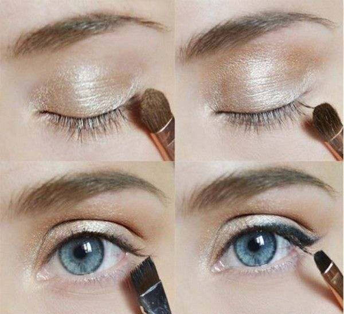 Посмотрите небольшое руководство по макияжу для голубых глаз, пошаговое фото: