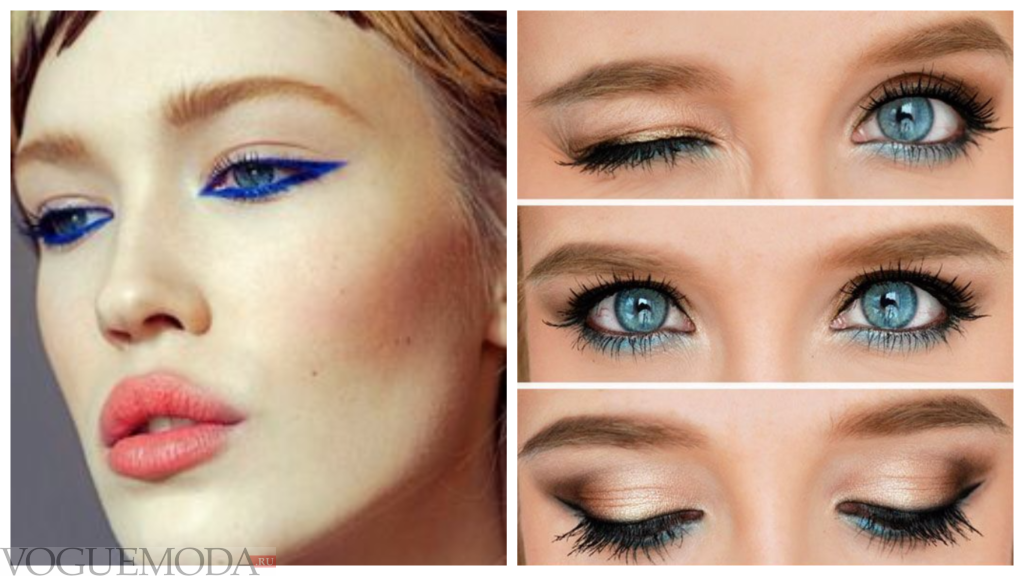 макияж для голубых глаз: цветные стрелки