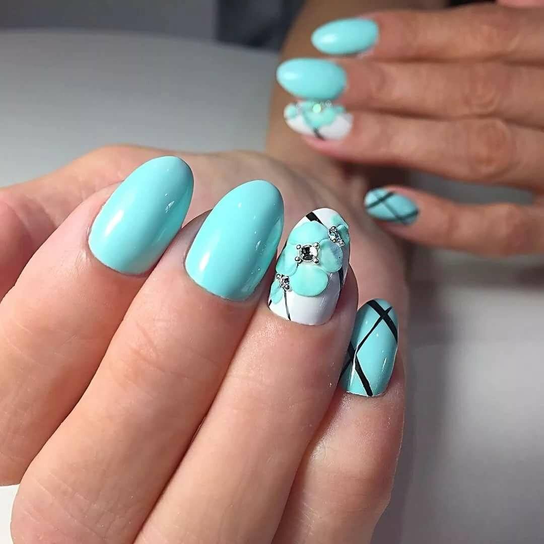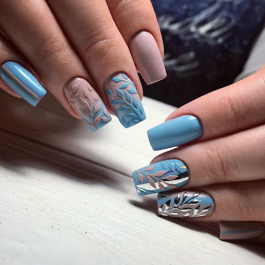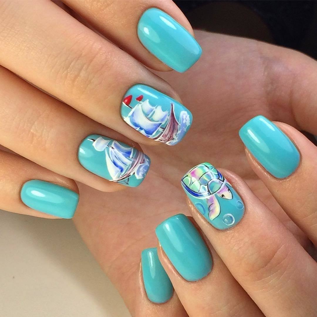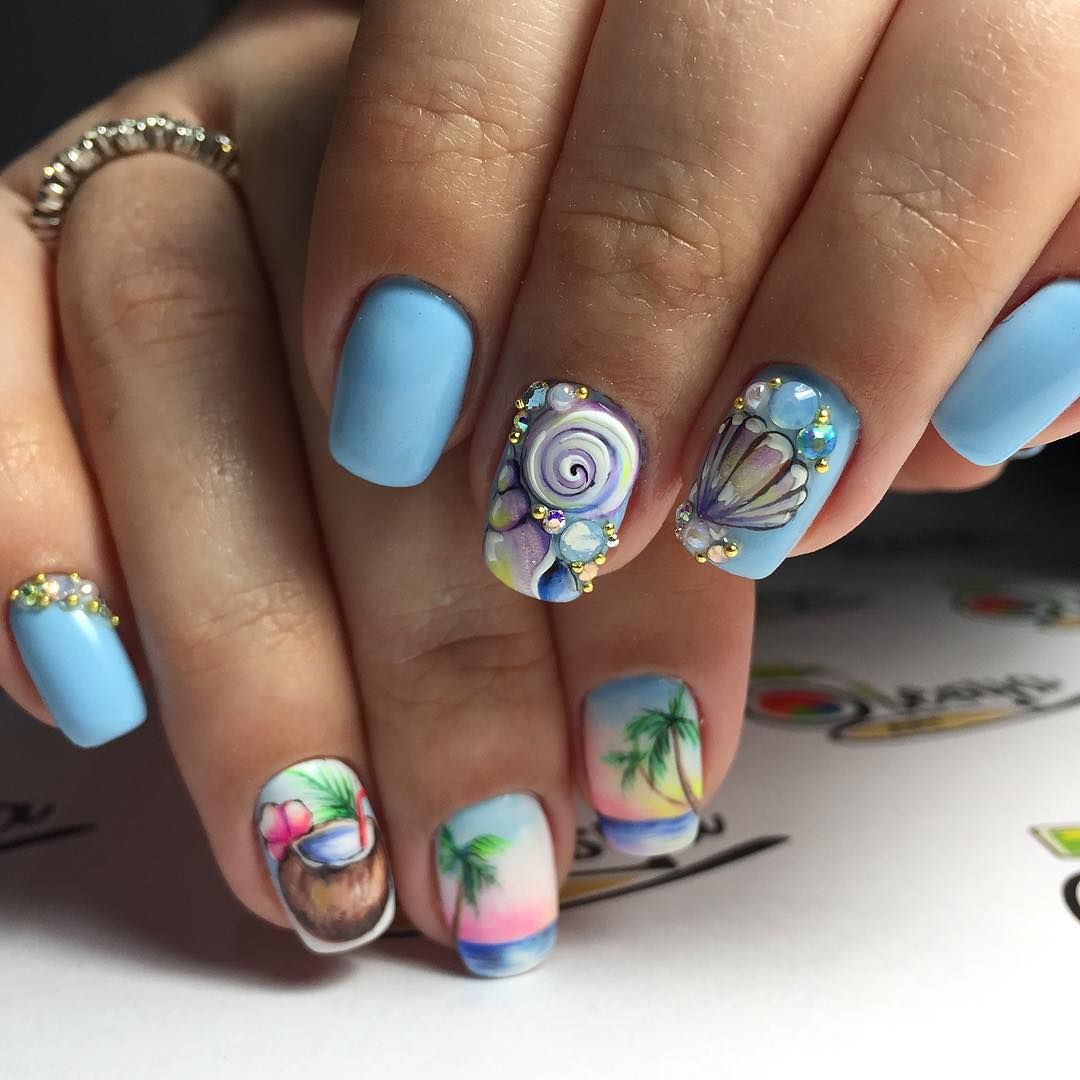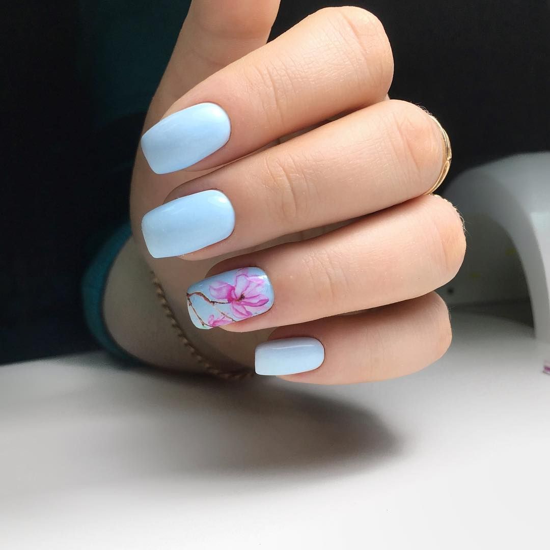 Ну и конечно же, рисунок на ноготках – это всегда актуально. Независимо от того, будет это небольшой узор или более сложная задумка – смотрится это всегда привлекательно. К тому же, голубой цвет отлично вариант для создания фона на ноготках.