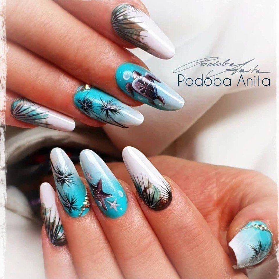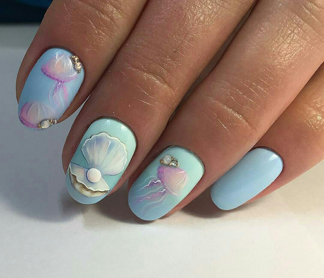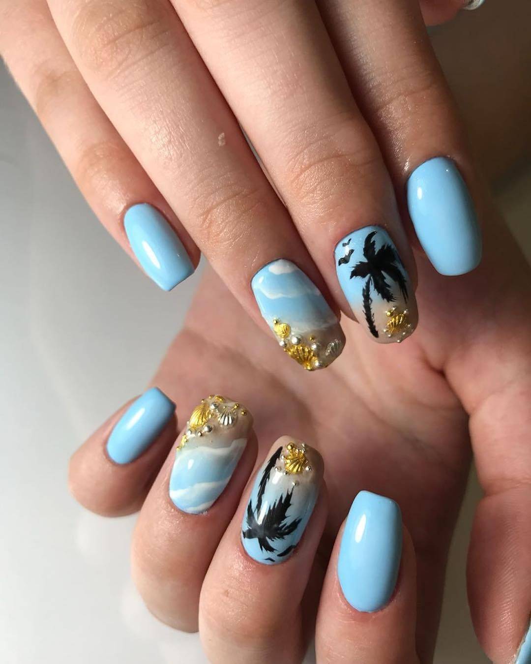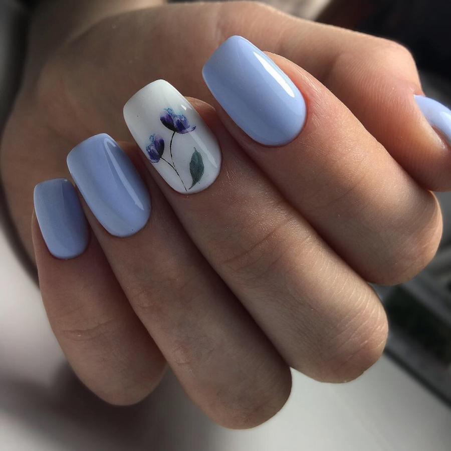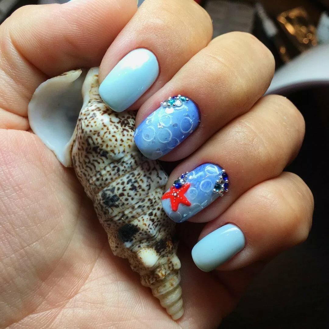 Ну и конечно же, рисунок на ноготках – это всегда актуально. Независимо от того, будет это небольшой узор или более сложная задумка – смотрится это всегда привлекательно. К тому же, голубой цвет отлично вариант для создания фона на ноготках.