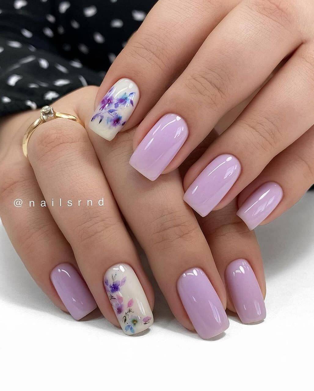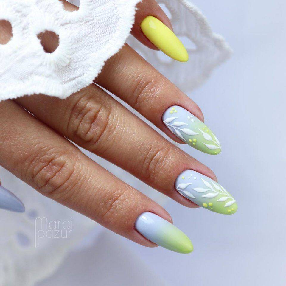 В весеннее время в тренде флористические мотивы. Выбирают нежные пастельные тона, например: сиреневый, нежно-желтый, мятно-зеленый. Неплохо будет смотреться градиент из весенней цветовой гаммы. Посмотрите некоторые идеи для вдохновения на примере фото.