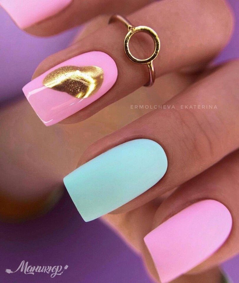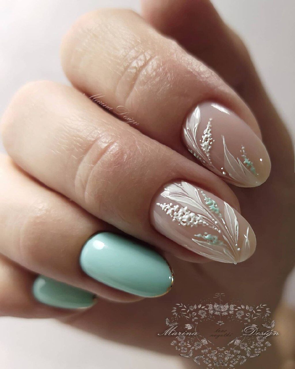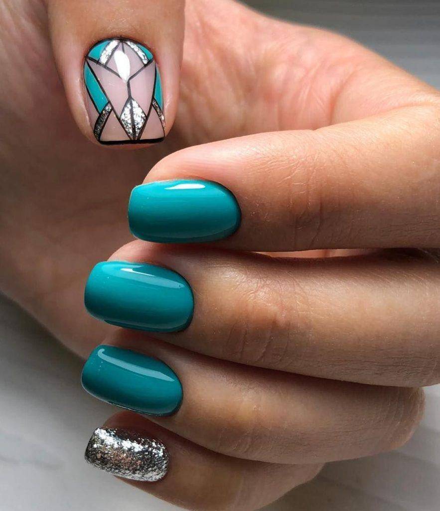 Подобное сочетание будет актуальным, если вы предпочитаете маникюр в этнической тематике или в геометрическом дизайне. Чтобы придать небольшой текстурности, используйте матовое покрытие.