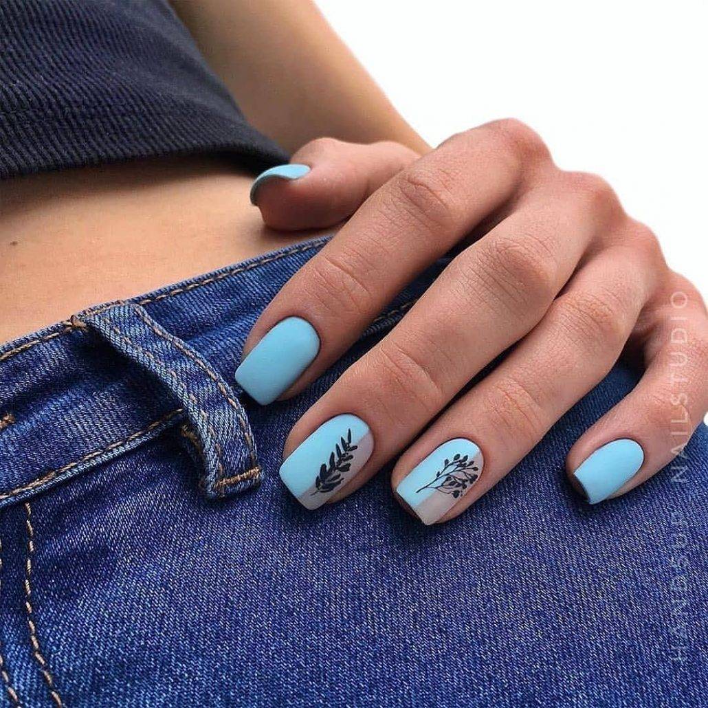 В 2019 году актуальным станет маникюр с голубым матовым покрытием