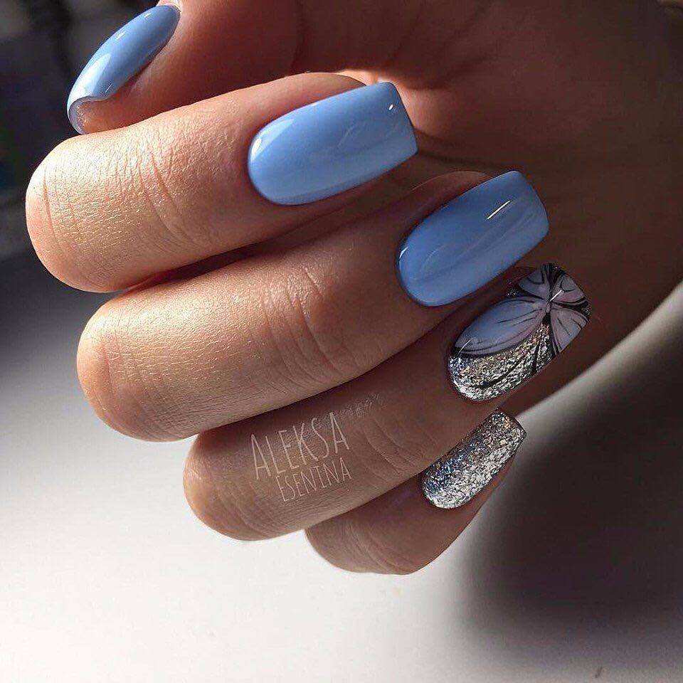 Нежный голубой маникюр с серебром – это не только признак утонченного вкуса, но и настоящая находка для девушки, ведущей активный образ жизни! Судите сами: выполняется он с помощью различных техник и средств, смотрится эффектно, а подходит к любому образу, будь то практичный повседневный наряд или исключительное свадебное платье! Но самое главное, что сделать его можно не только в салоне, но и в домашних условиях, проявив при этом совсем немного терпения и фантазии.