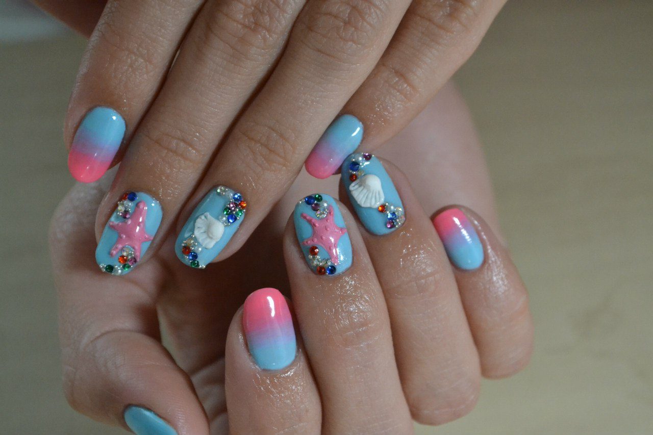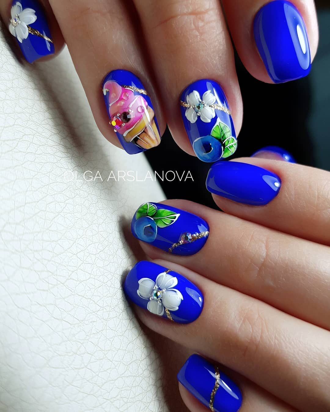 Для летнего маникюра характерны яркие сочные краски. Можно использовать любую технику nail art для создания уникального дизайна. Подойдет абстракция, цветочный принт, градиент, френч и другие стили. Используют пляжные мотивы, фруктовый микс.
